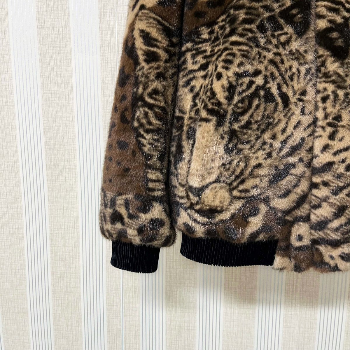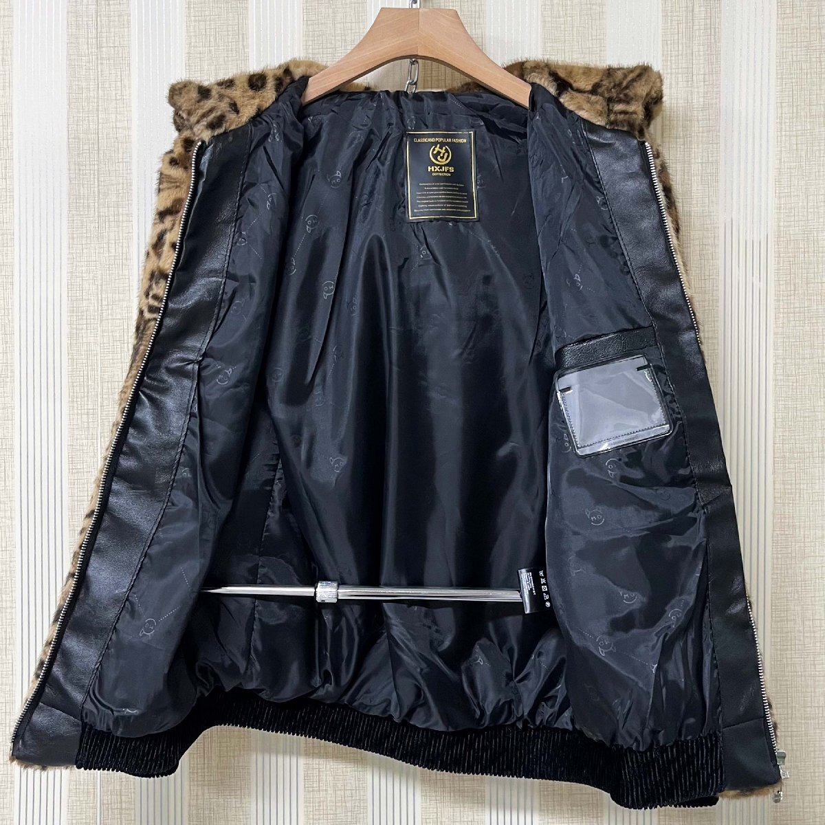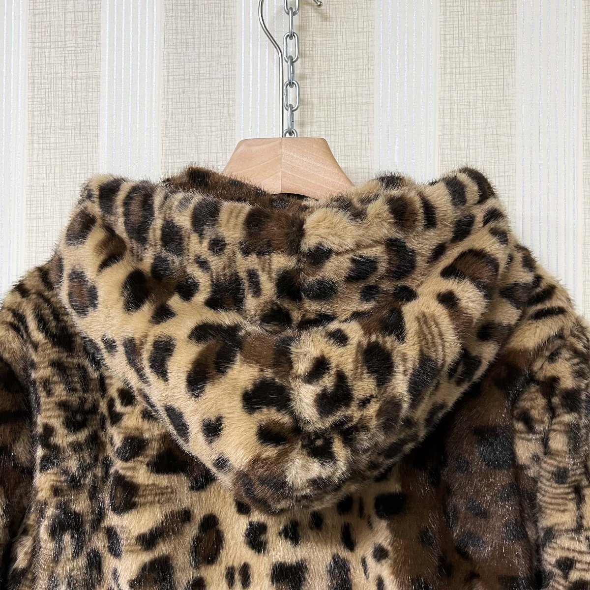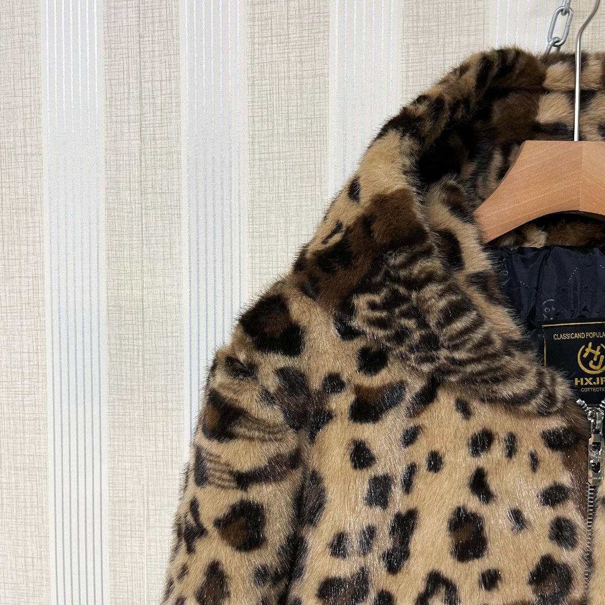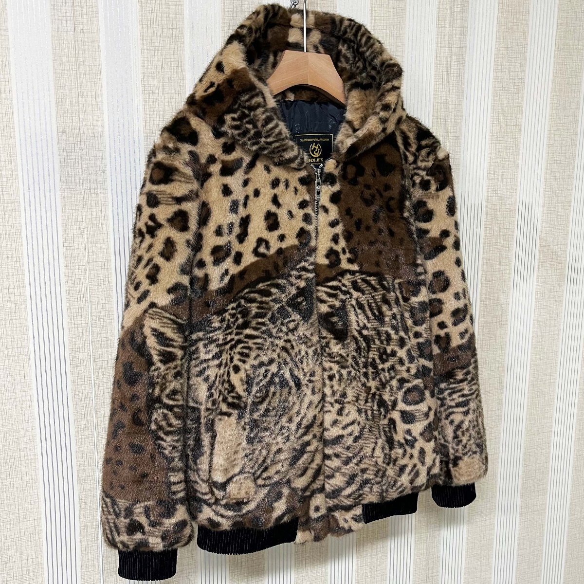 毛皮コート イタリア製造 ミンク混 暖かい ヒョウ柄 フード付き ジャケット コート アウター ブルゾン ファンコート 秋冬 真冬 SIZE:XL