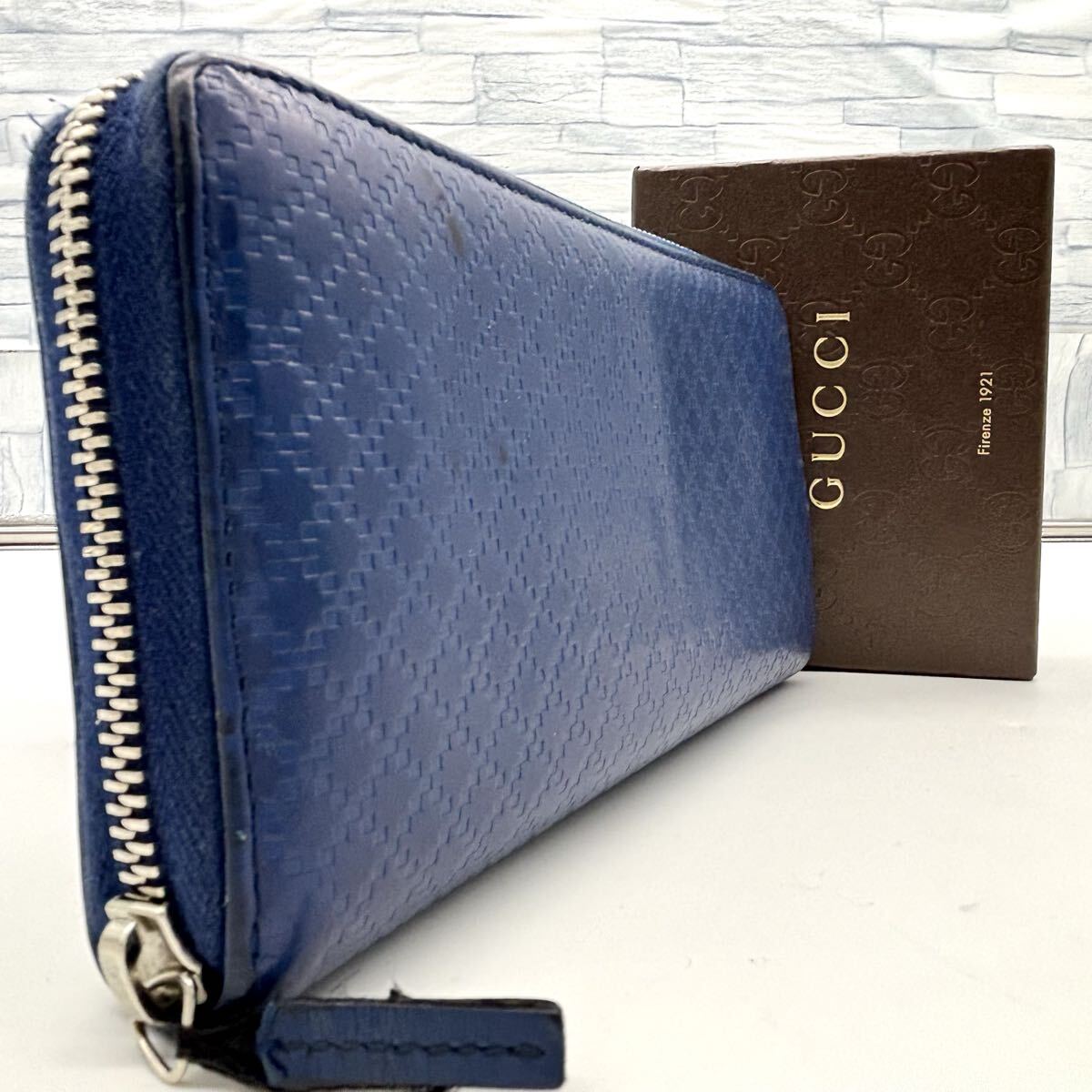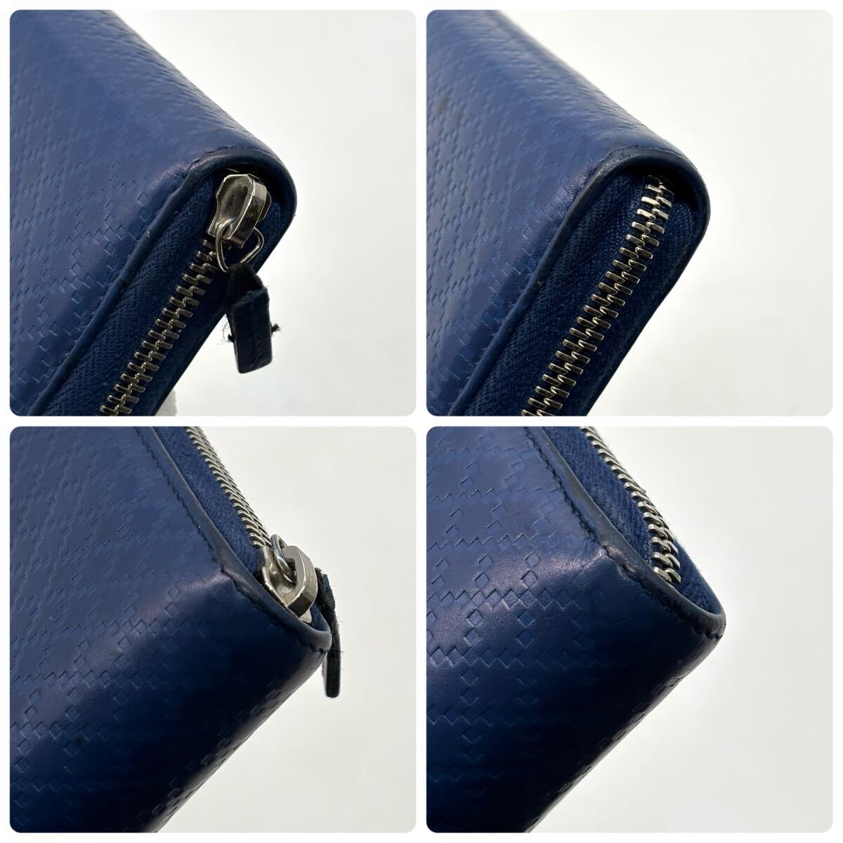 入手困難●GUCCI グッチ 長財布 ラウンドファスナー ジップ ディアマンテ レザー 本革 ブルー系 青 メンズ ビジネス ウォレット 1円 本革