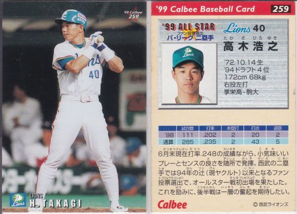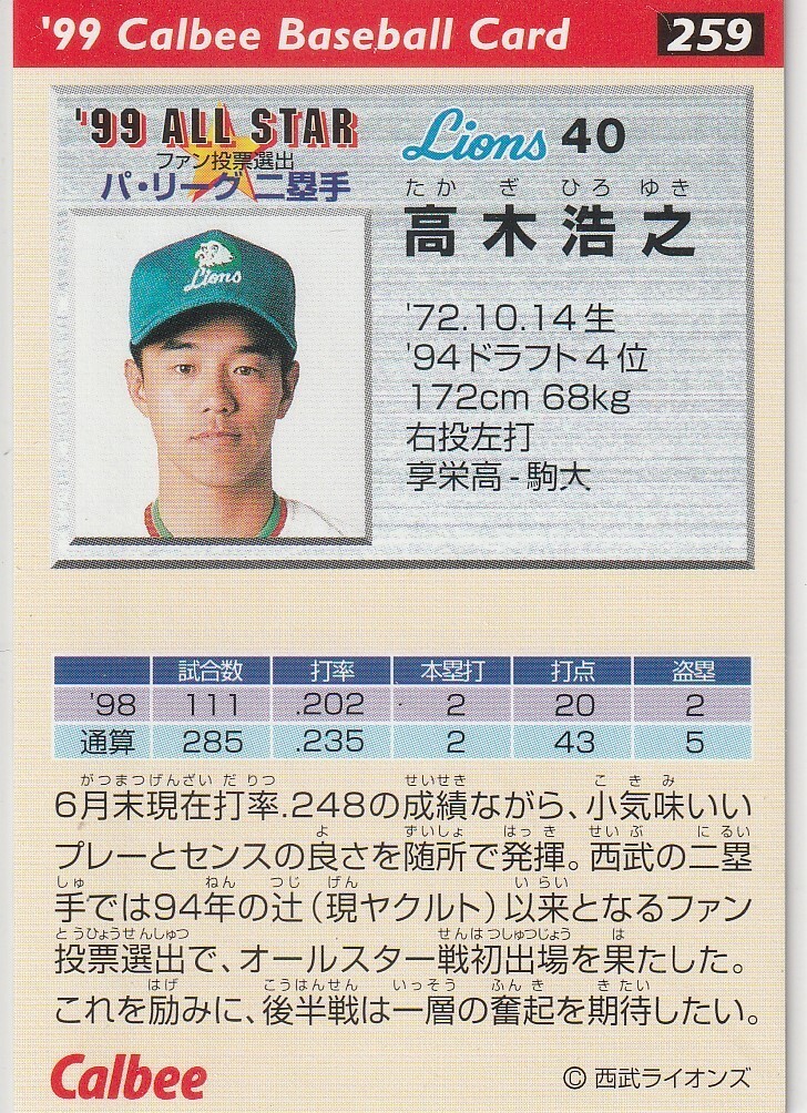 ●1999カルビー【高木 浩之】 BASEBALL CARD:ALL STAR No. 259:西武 R2