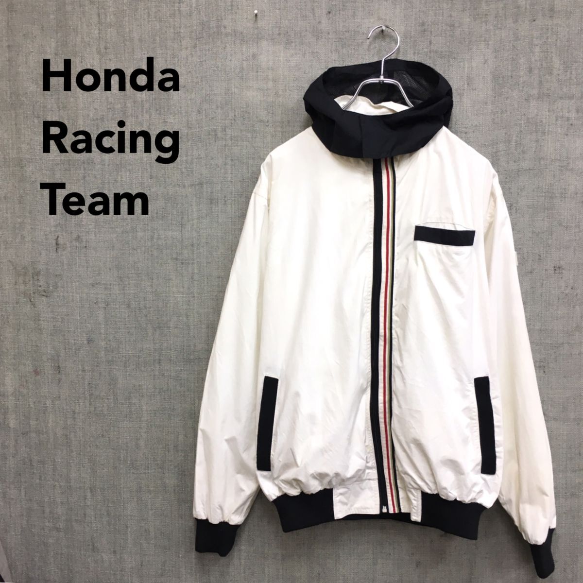 2N1264-G-N◆ Honda Racing Team ホンダレーシングチーム ジップアップパーカ ジャンパー 裏地メッシュ 袖口リブ ◆ sizeM 白 ナイロン