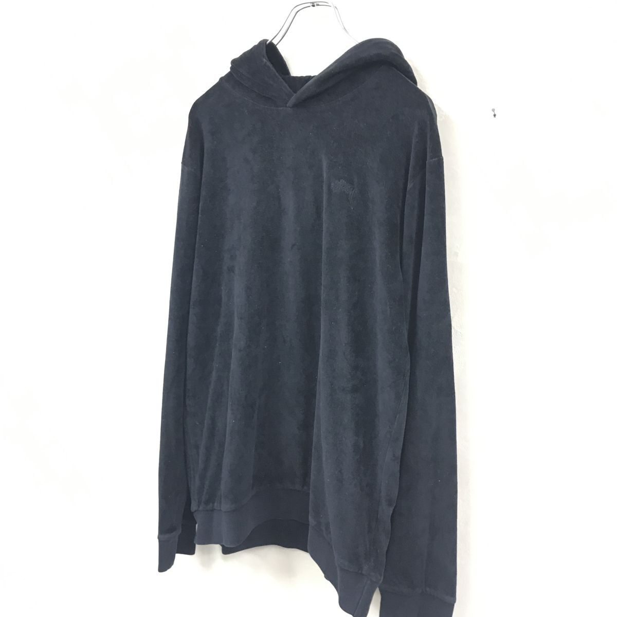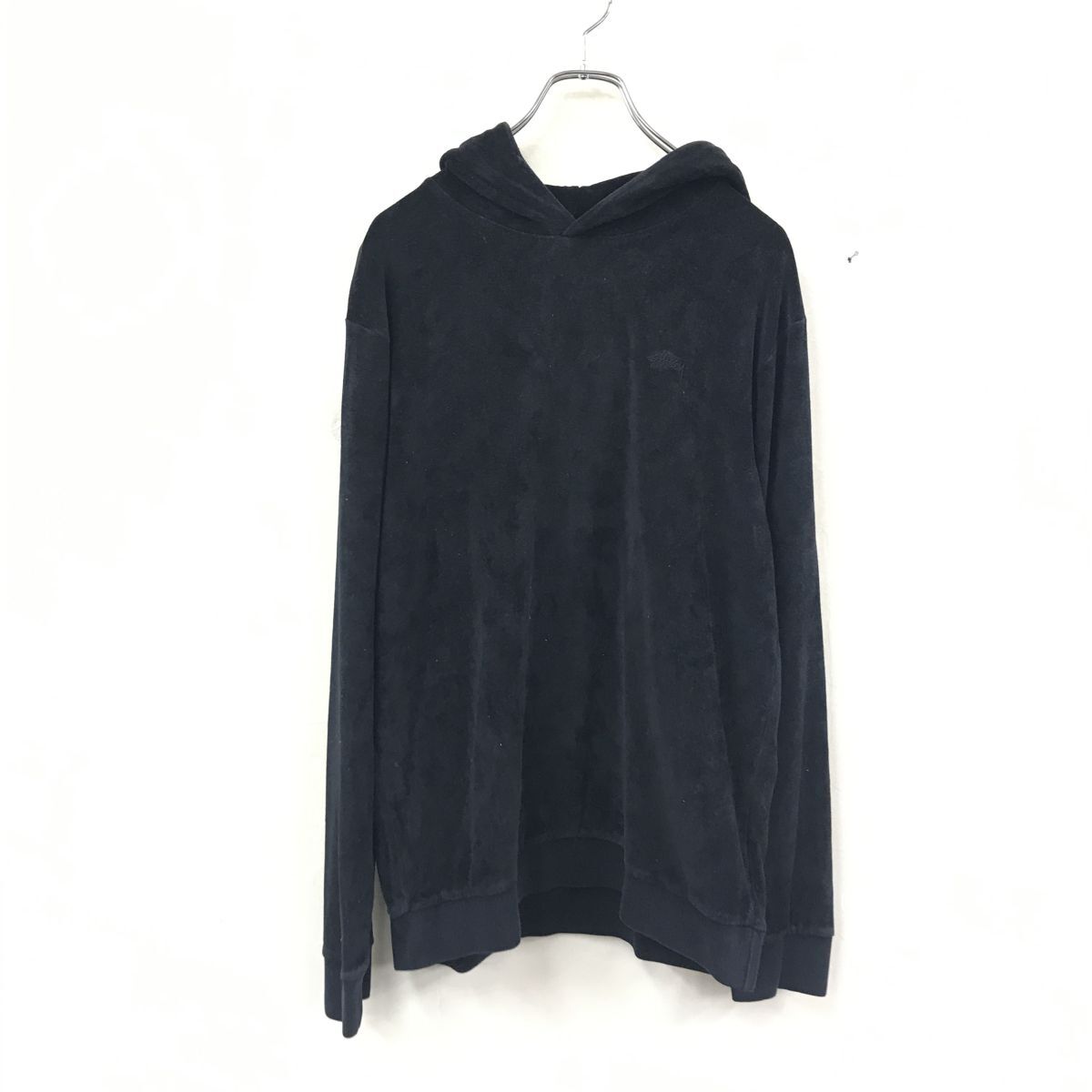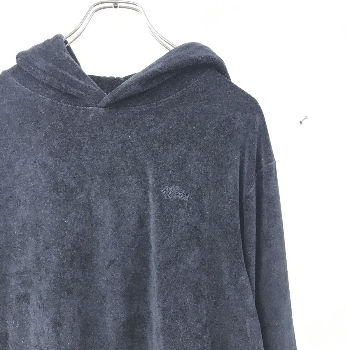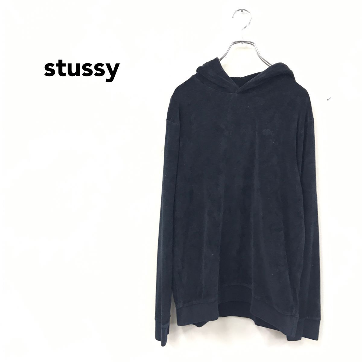 2N1517-O◆stussy ステューシー 長袖トレーナー フーディ プルオーバー ブランドロゴ 刺繍ロゴ ワンポイントロゴ◆sizeM ブラック コットン