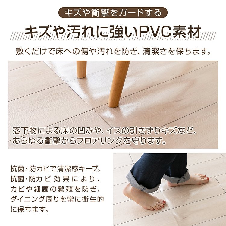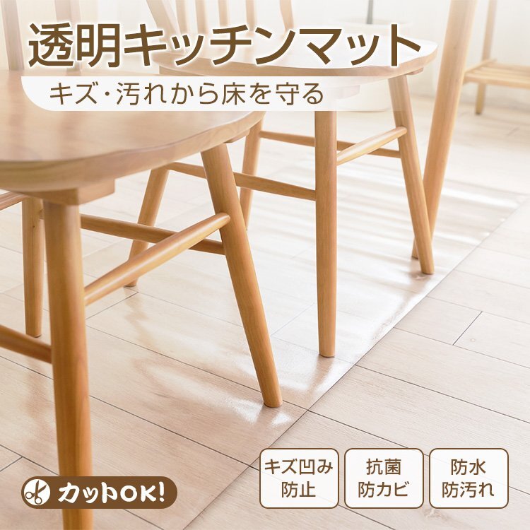 送料無料 キッチンマット 拭ける 透明 クリア おしゃれ 60×240 透明キッチンマット 撥水 洗える 台所マット PVC 厚さ1.5mm in036-60