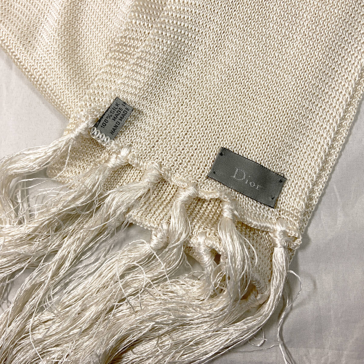 Dior homme シルク フリンジ ストール ディオールオム オフホワイト マフラー USED