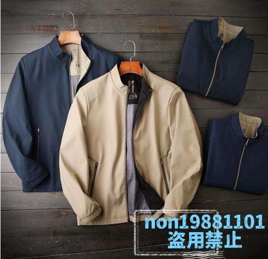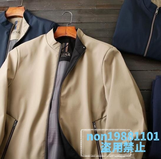 新入荷大人気Lカーキ防風&撥水メンズ 立ち襟ジャケット 高級サテン生地 耐摩耗 防シワ 着心地快適 春秋 ビジネス カジュアル アウター 2色
