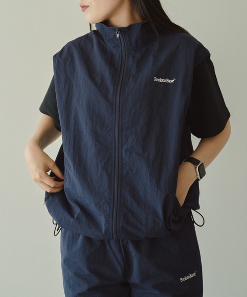 「BROKEN BASE」 ナイロンベスト LARGE ネイビー メンズ