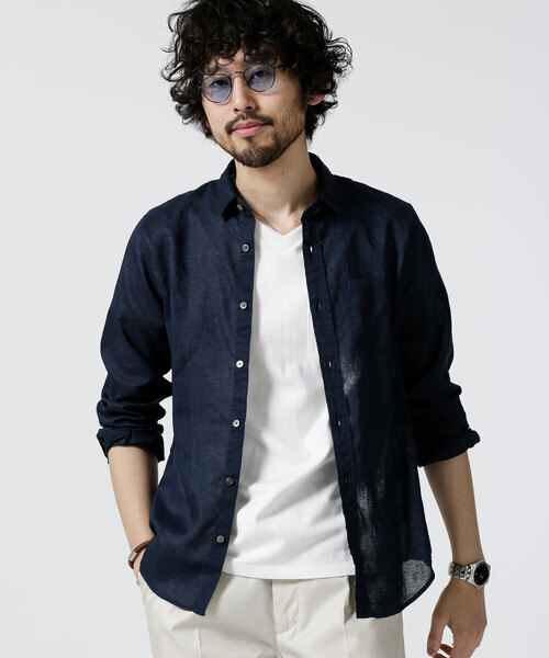 キーワード:シャツ メンズ リネン 麻 レギュラーカラー ロング丈 長袖 無地