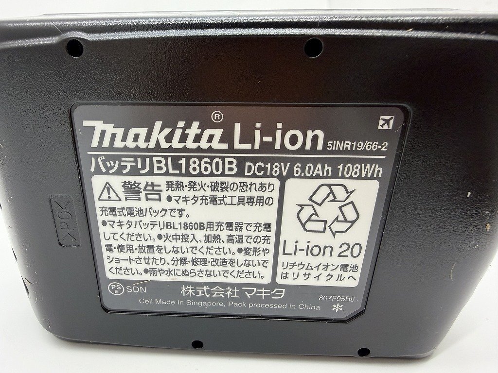 18V-6.0AhバッテリBL1860B(バッテリ残容量表示タイプ)です。