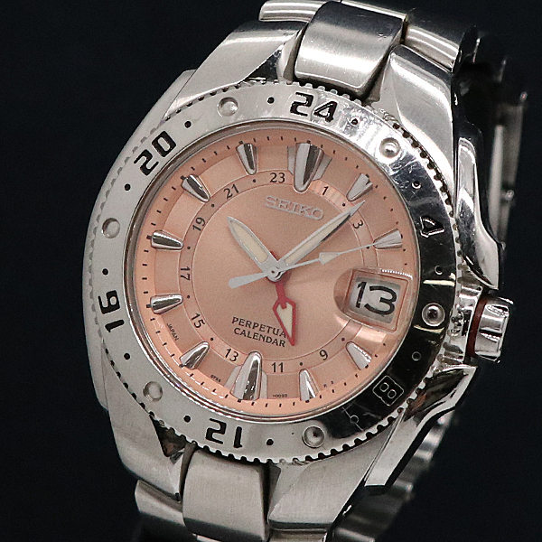 1円 稼働 良品 セイコー パーペチュアルカレンダー 8F56-002A 930143 QZ シルバー ピンク文字盤 時計 2000000 NSK MTY