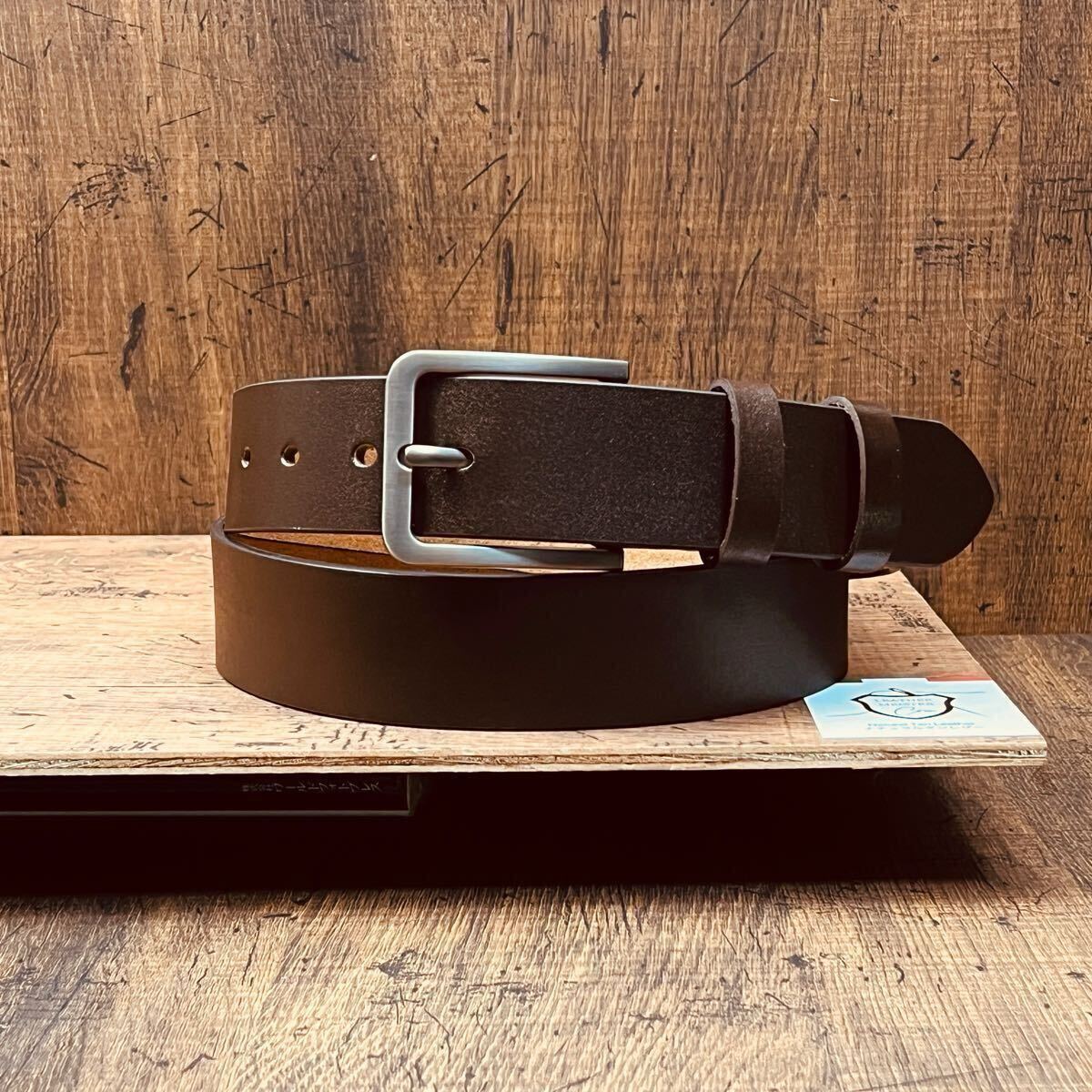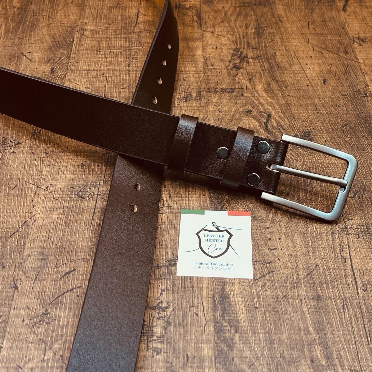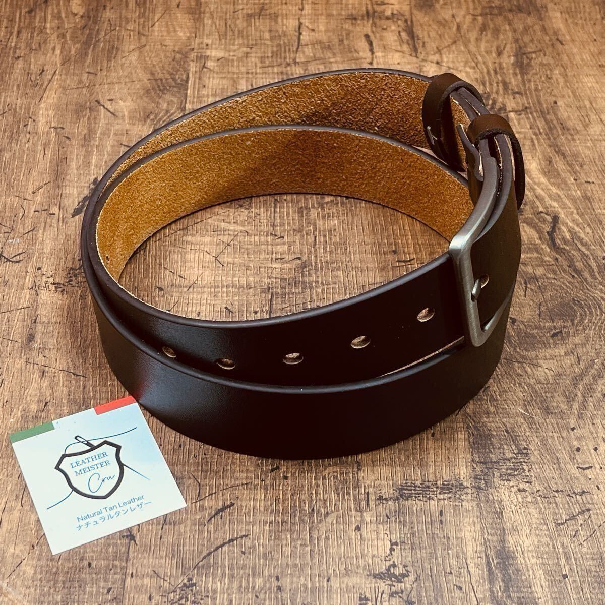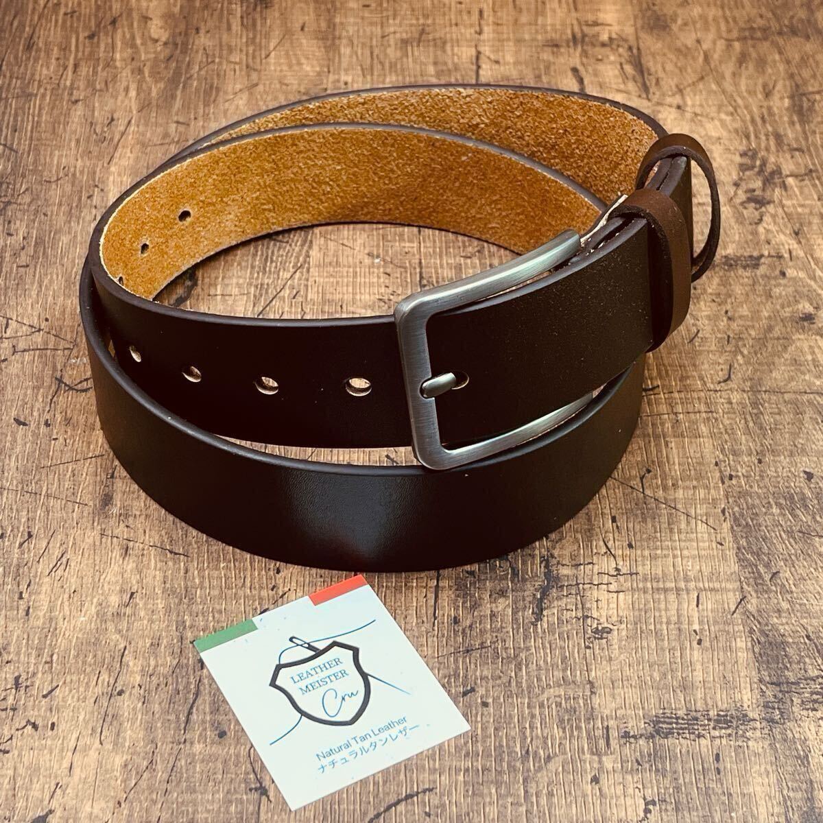 本革の醍醐味であるエイジングが存分に楽しめるナチュラルヌメ革を使用したレザーベルトです。使えば使うほどに味が出てきます。しっかりとした厚みで作られた重厚なガンメタブラック色のバックルが高級感を与えます。