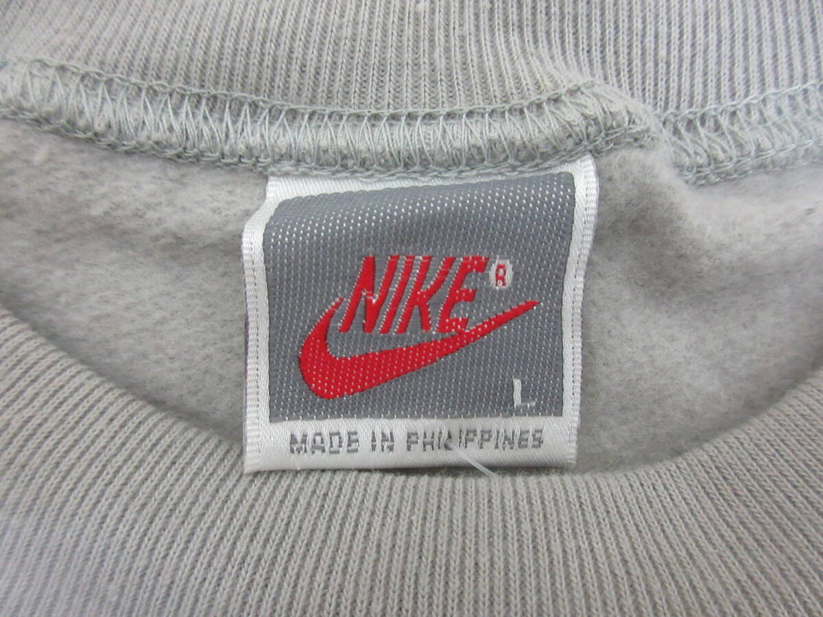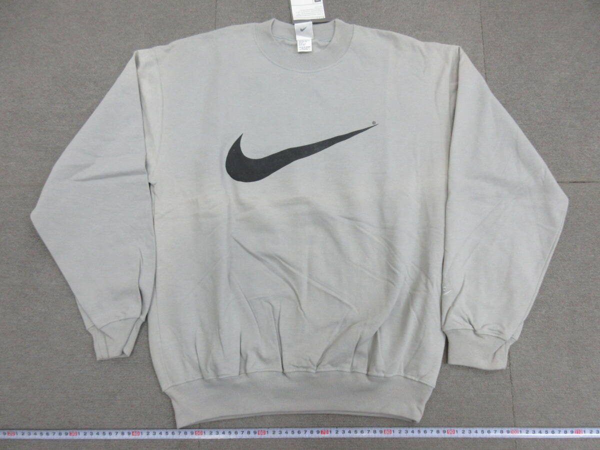 M【11-18】▼10 未使用 タグ付き 銀タグ ビンテージ NIKE ナイキ スウェット トレーナー Lサイズ 裏起毛 ロゴ グレー【5-10】