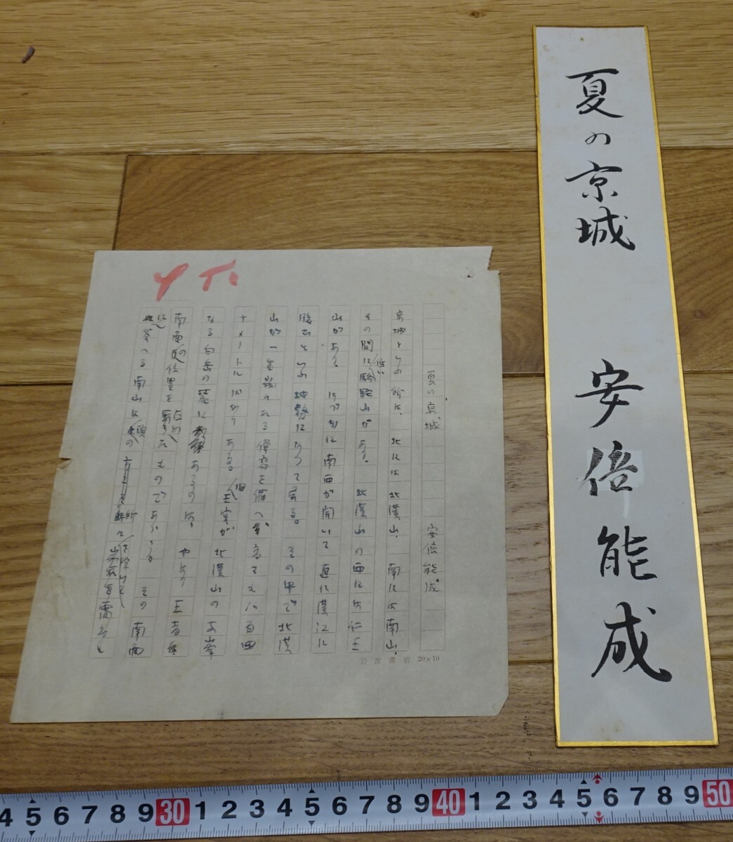 rarebookkyoto k70書資料  安部能成/ 紙本 夏の京城 短冊 行書まくり原稿  学者 1920年頃作 韓国帝国大学 書家 篆刻家 有隣