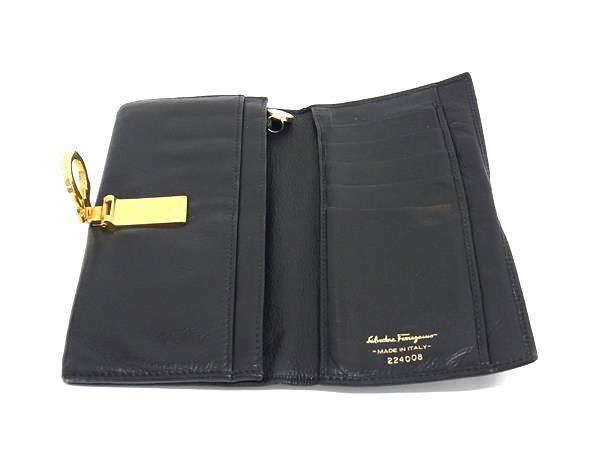 Salvatore Ferragamo フェラガモ 224008 ガンチーニ レザー 二つ折り 長財布 ウォレット ブラック系 DK5679