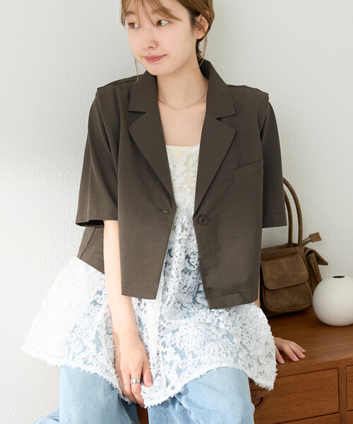 参考商品名:【S.Lサイズ展開】半袖タックジャケット