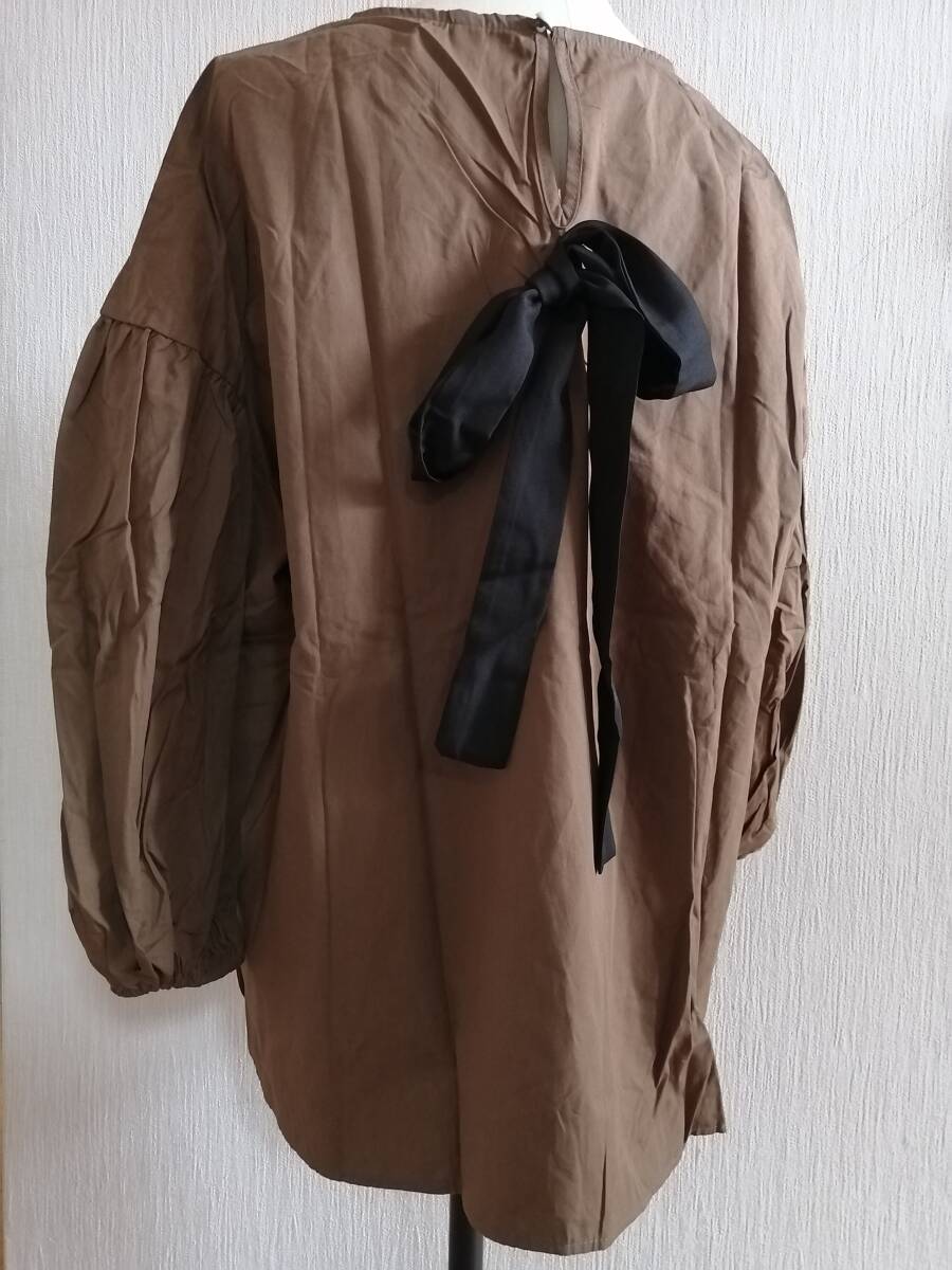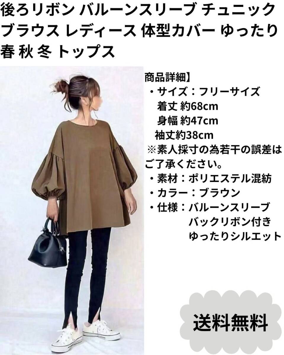 後ろリボン バルーンスリーブ チュニックブラウス レディース 体型カバー ゆったり 長袖 春秋冬 トップス かわいい