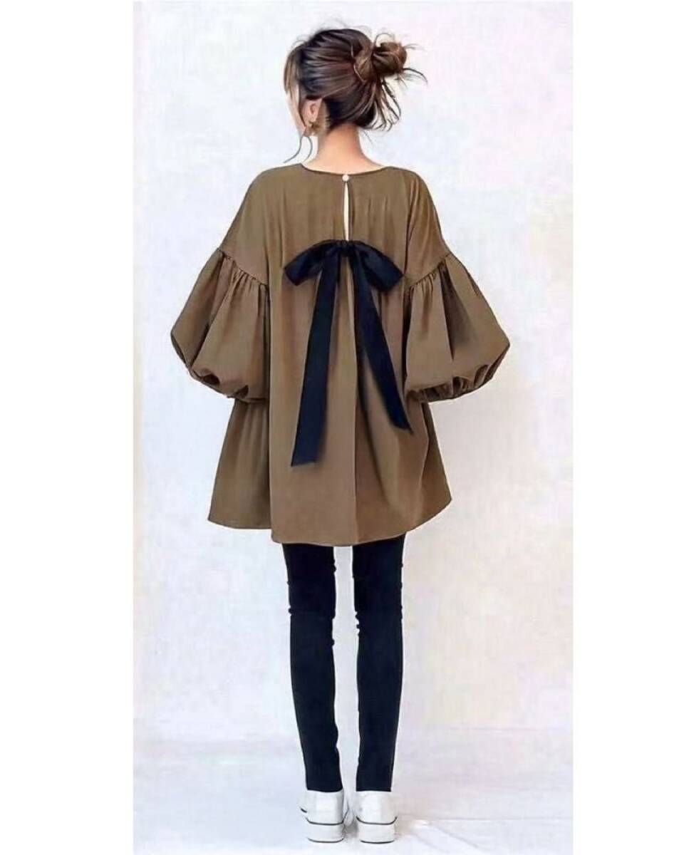 バックリボンが大人可愛さを引き立てる【ボリュームスリーブチュニックブラウス】です。