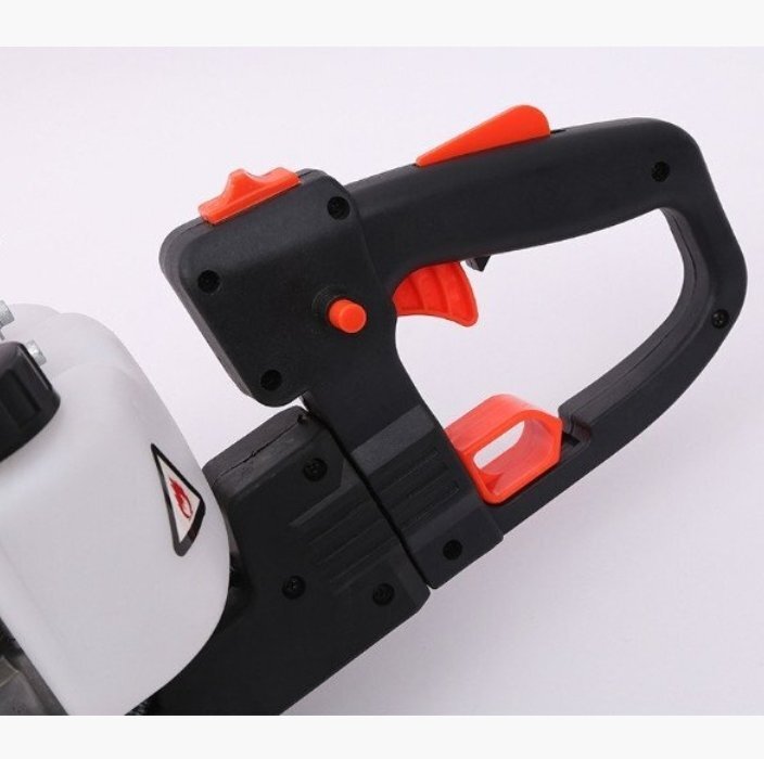 ・ヘッジトリマーを起動するとき、スイッチを2回確認するように設計され、誤動作によるスタート開始事故などを防ぎます。