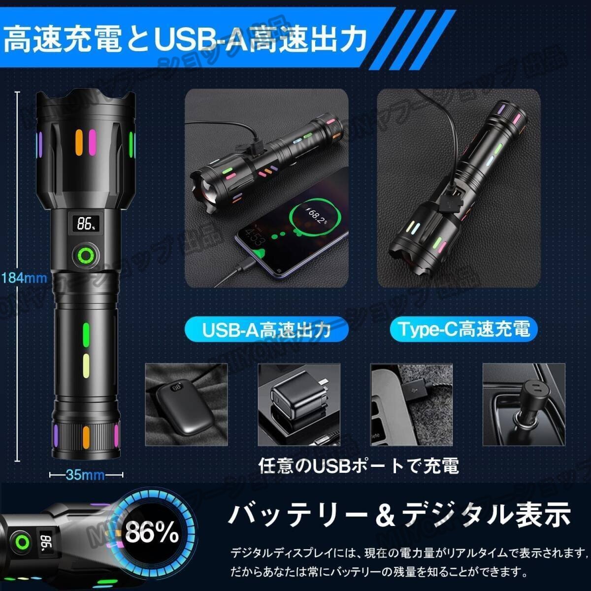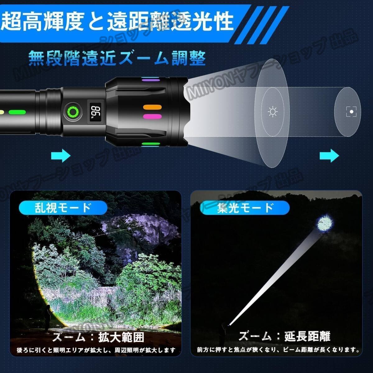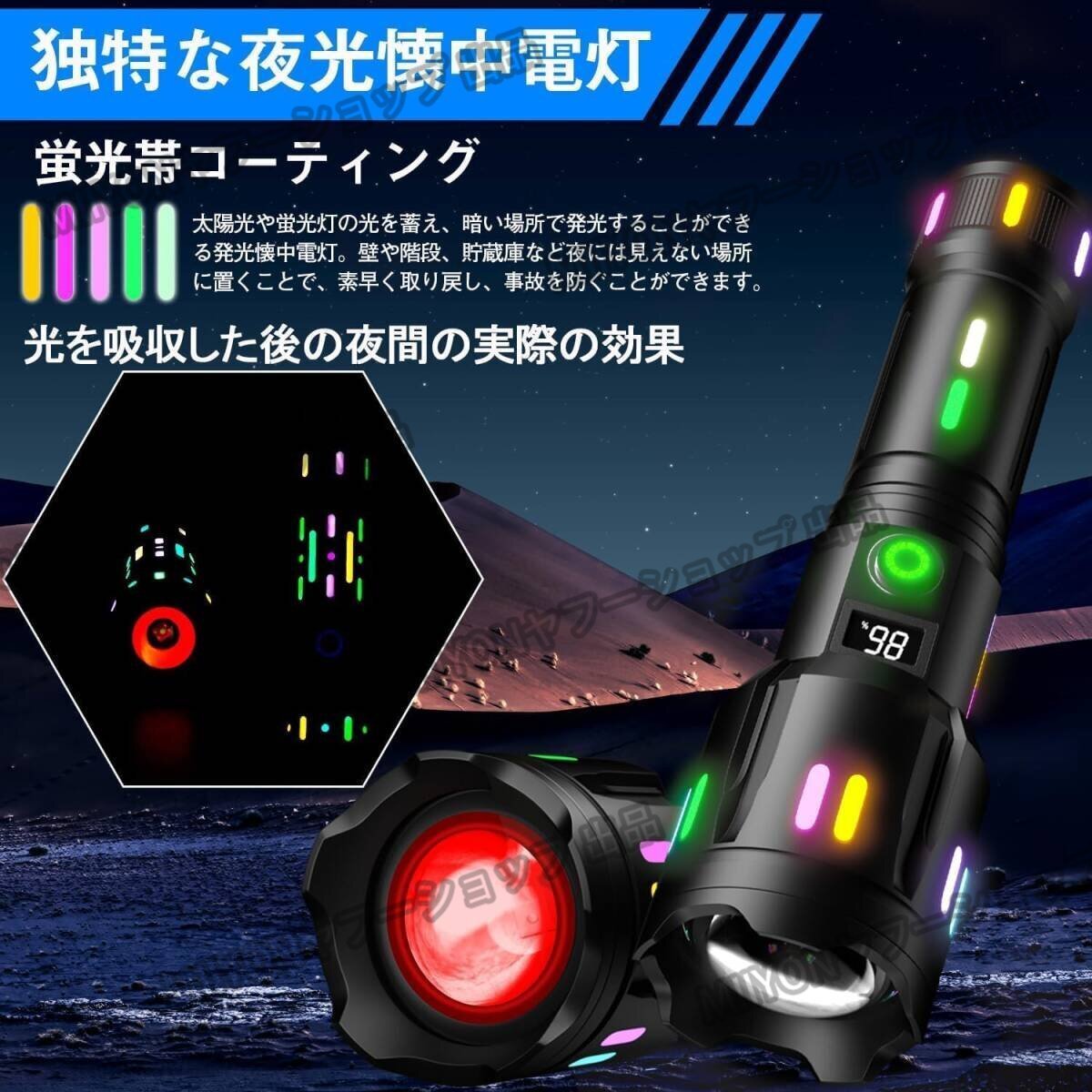 【最新液晶画面デジタル表示】独特な夜光懐中電灯 led 強力 軍用 最強 4000000ルーメン超高輝度 明るい ハンディライト USB充電式 ledライト 超長遠射 超強力 ズーム 手持ちライト 明るいライト 6モード調光 軽量フラッシュライト ハンドライト 作業用ライト 携帯ライト 多種電池が適用 ライト 防水 防災 新型 へっとライト 登山 夜釣り キャンプ 地震 停電対策