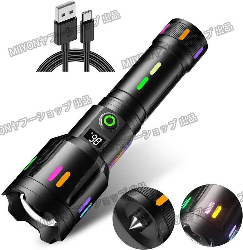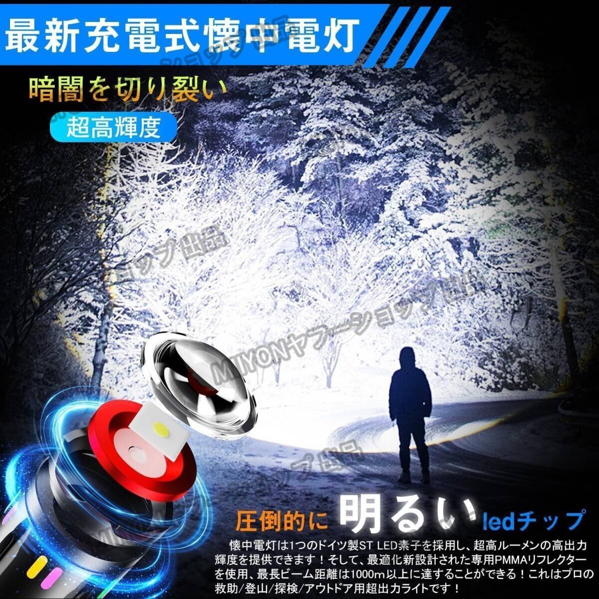 夜光懐中電灯 led 強力 最強 4000000ルーメン超高輝度 明るい ハンディライト USB充電式 ledライト 超長遠射 超強力 ズーム 手持ちlhw262