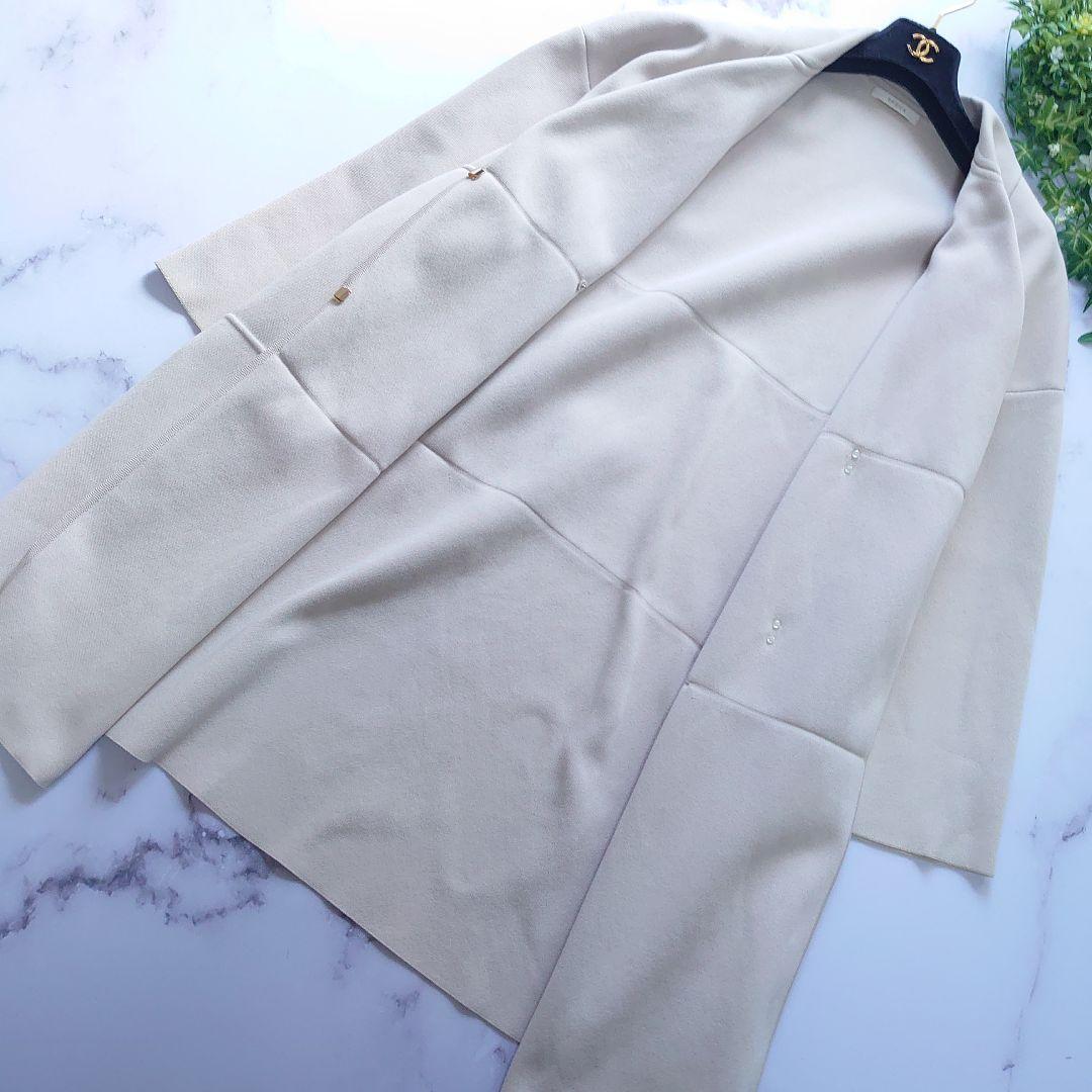 EPOCA エポカ ダンボールニットコート サイズ40 M相当 ベージュ ロングコート ドロップショルダー 長袖 ゴールドホック アウター チェスターコート 襟 レディース