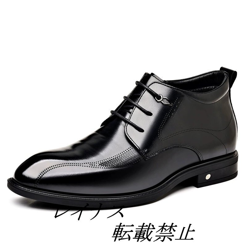 秋冬 表革 ビジネス防寒ブーツ 本革 先細 ボアライニング トレンド 紐付き 保温ブーツ