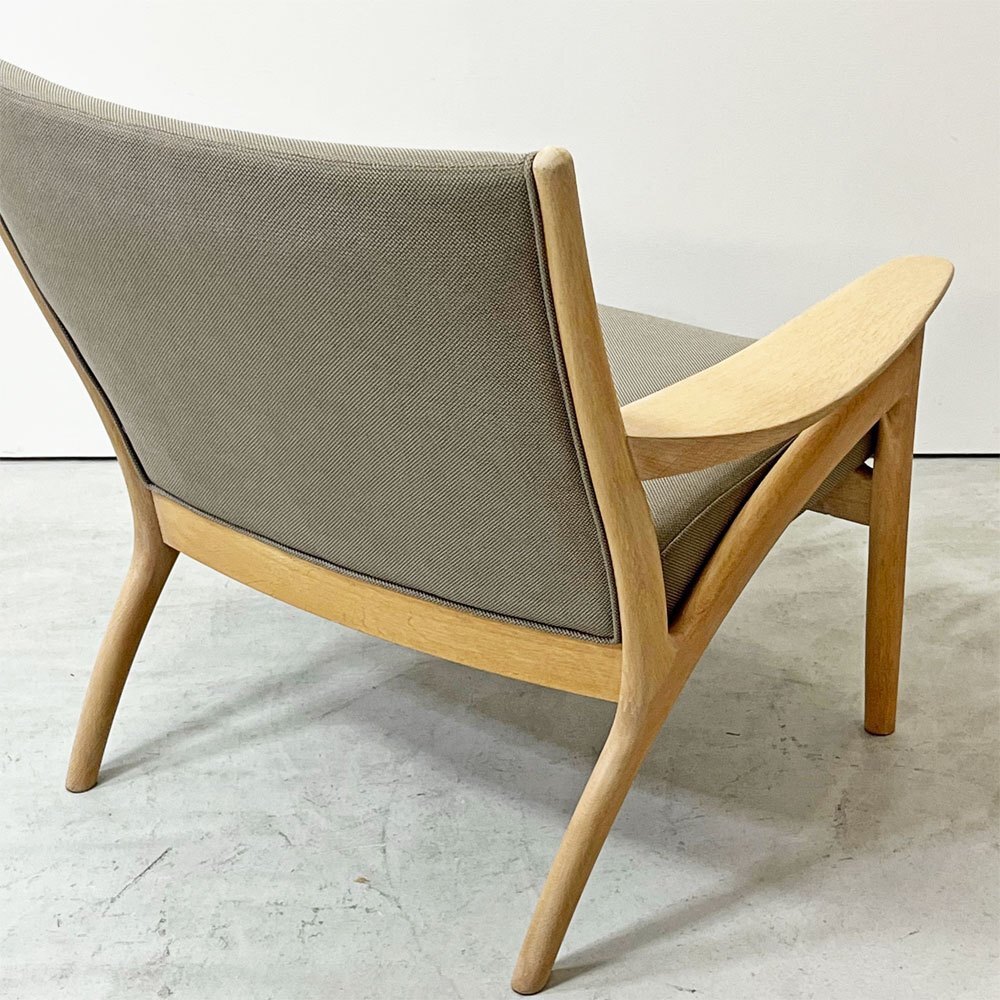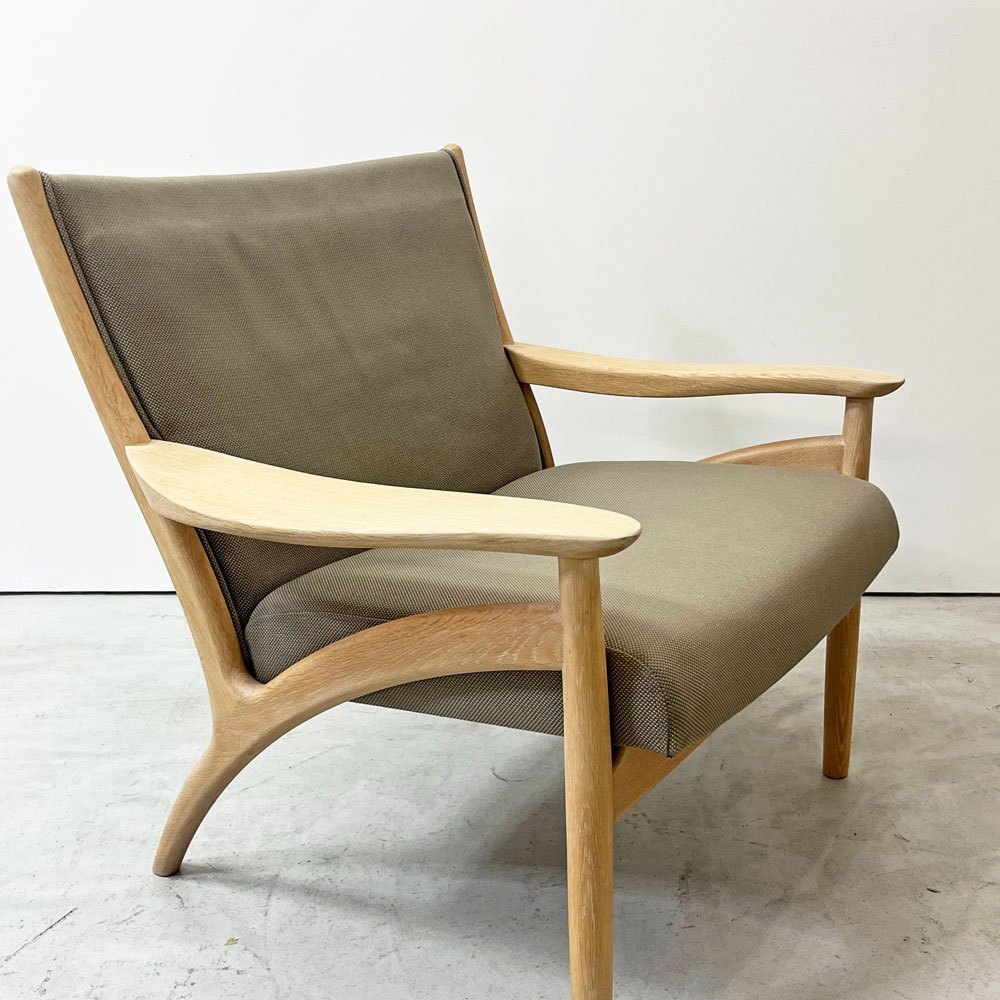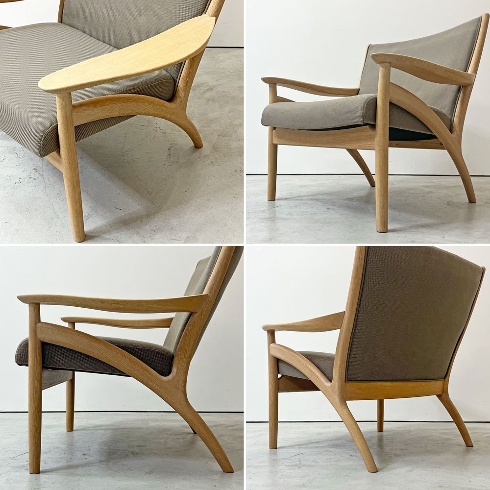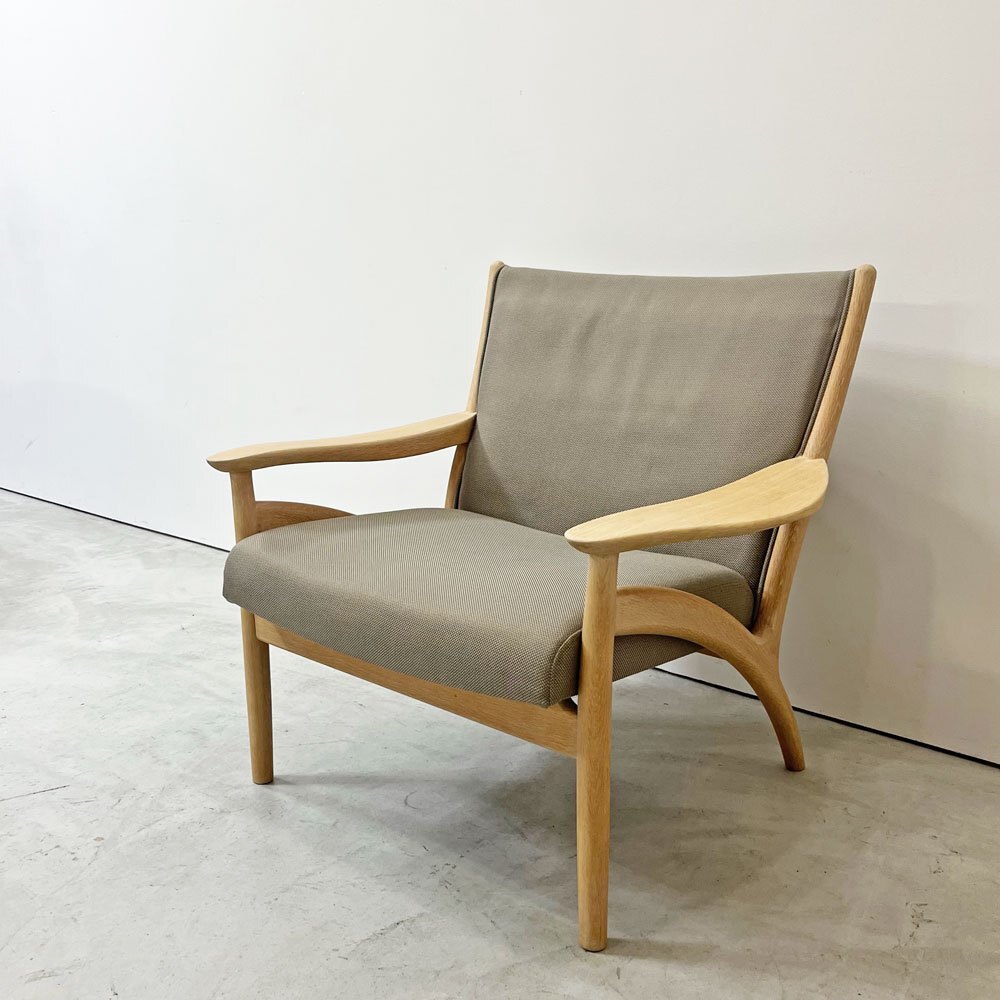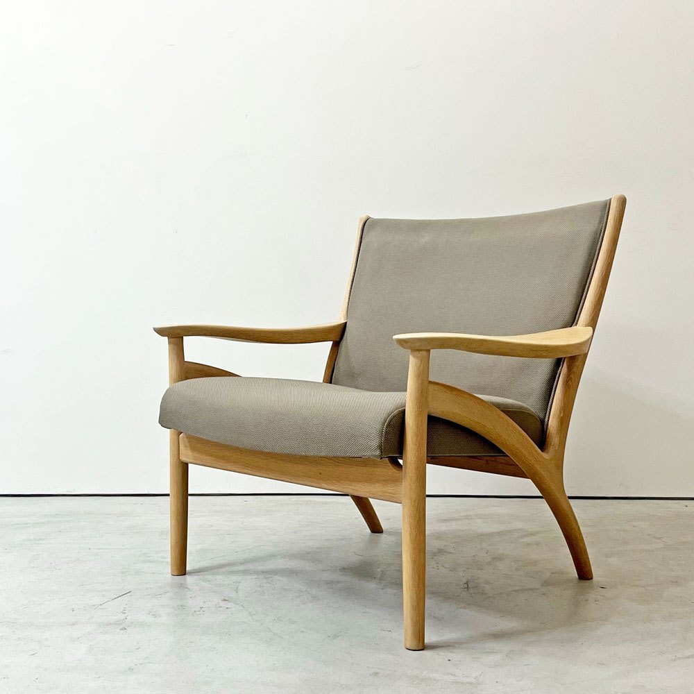 | コメント | 北海道・旭川の家具メーカー「インテリアセンター」は、現在" カンディハウス / CANDE HOUSE "という社名で1968年に設立。北海道の上質な国産ナラ材を使用した家具製造を続け、「 和の美意識 」が内包する同社のオリジナル家具やオーダー家具は国内外で高い評価を受けています。 今回は同社が販売していた柔らかく優しい曲線が特徴の"フローレンス FLORENCE"シリーズ1Pラウンジチェアとなります。 デザインを手掛けたのは、北海道恵庭市生まれの家具デザイナーである“中村昇”。 フレームにはナラ無垢材を使用し、虎斑が表れた上質な杢目を楽しむ事が出来ます。グレー系カラーファブリックとナラ無垢材のナチュラルな色合いが合わさり落ち着いた雰囲気に。 座面は幅広な為ゆったりと座る事ができ、窮屈さを感じさせない仕上がりに。 背もたれは傾斜が付いており、背中を預け全身の力を抜いて身を任すことが出来ます。 アーム部は幅広で腕をゆったりと休められるので、お昼寝や映画鑑賞、読書などリラックスシーンでは必見のフォルム。 綺麗なカーブを描いており、その滑らかな曲線はついつい撫でてしまいます。 また、ふっくらとした厚手のクッションは程よく沈み込み長座での負担を軽減してくれます。 シンプルながら計算された座り心地によってリラックス時間をより向上させ、ナチュラルながら大人の落ち着いた雰囲気を持つ一脚です。 ※当ショップは、主にリサイクル品を取り扱っております。基本的にUSED品である事をご理解頂き、ご入札をご検討下さいませ。 |