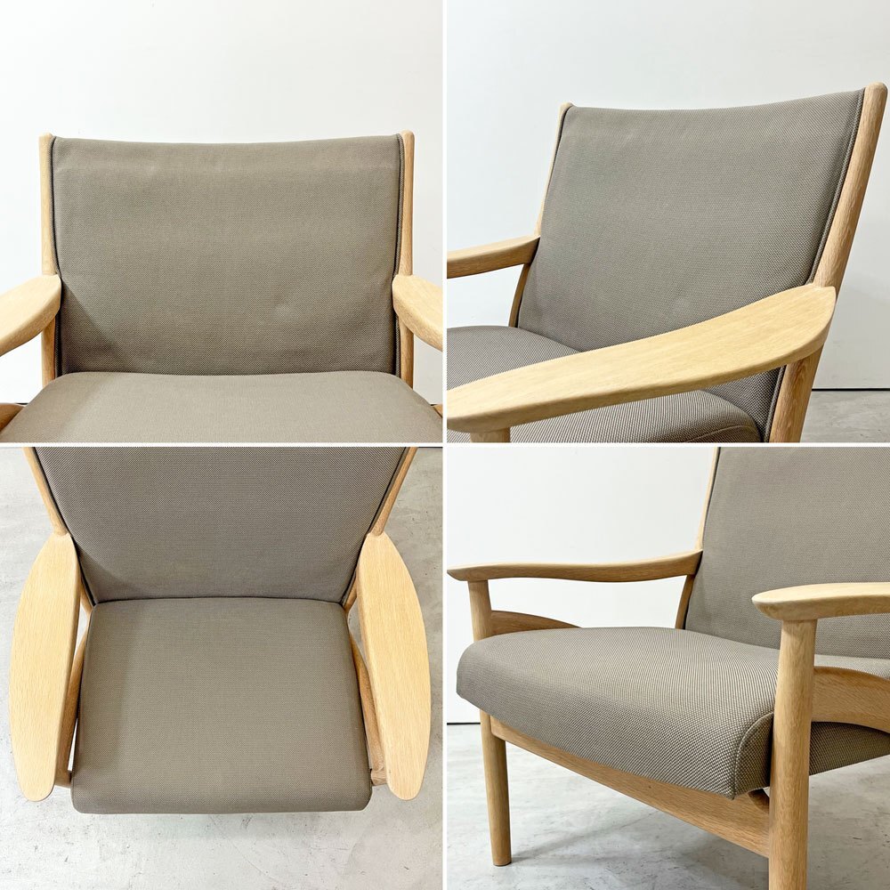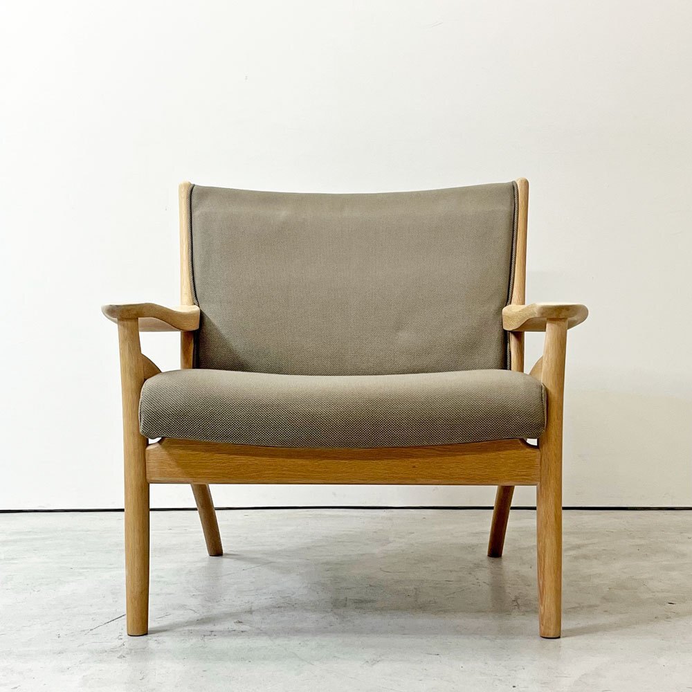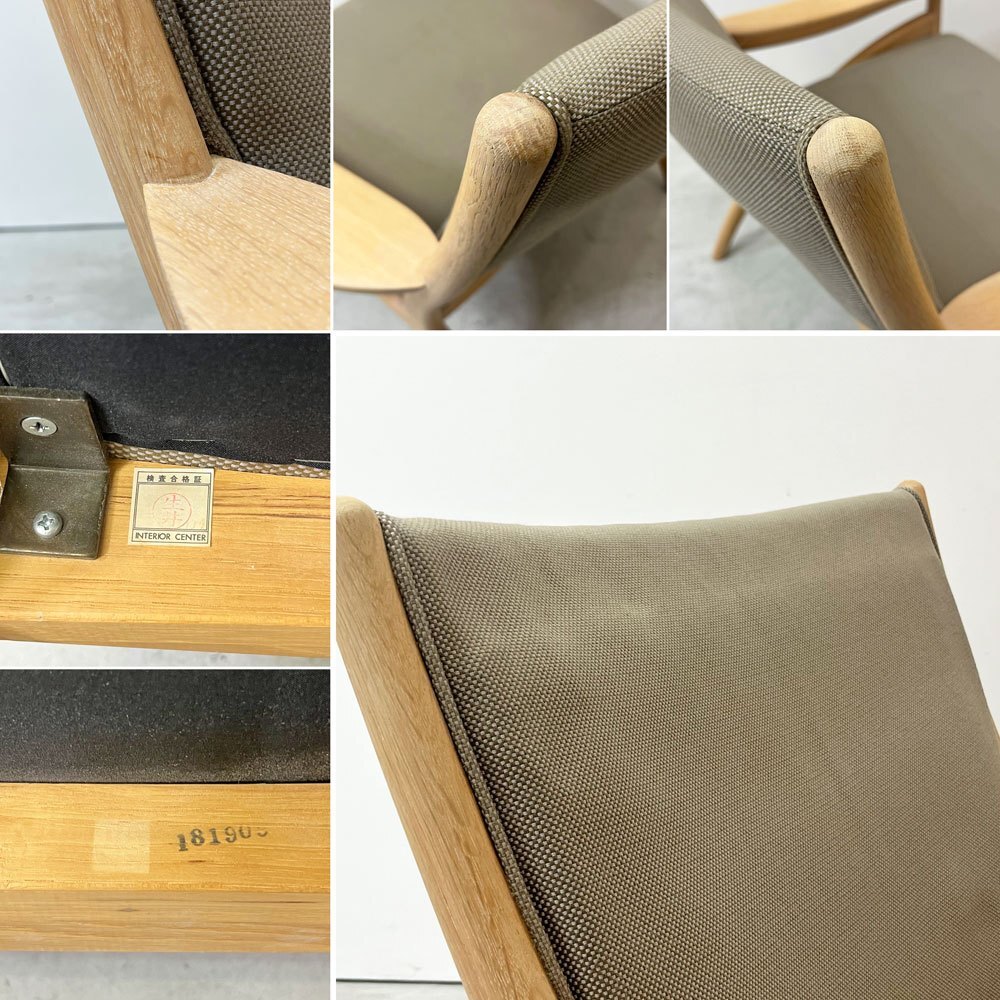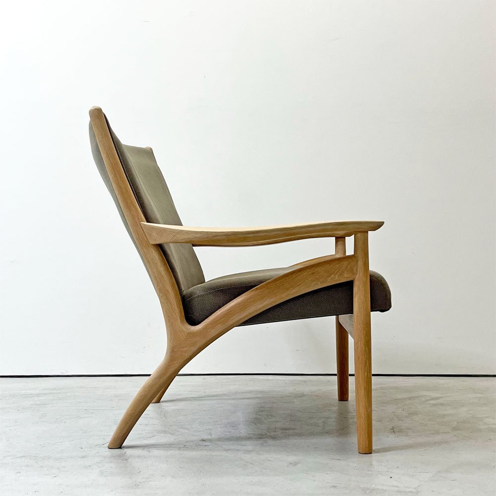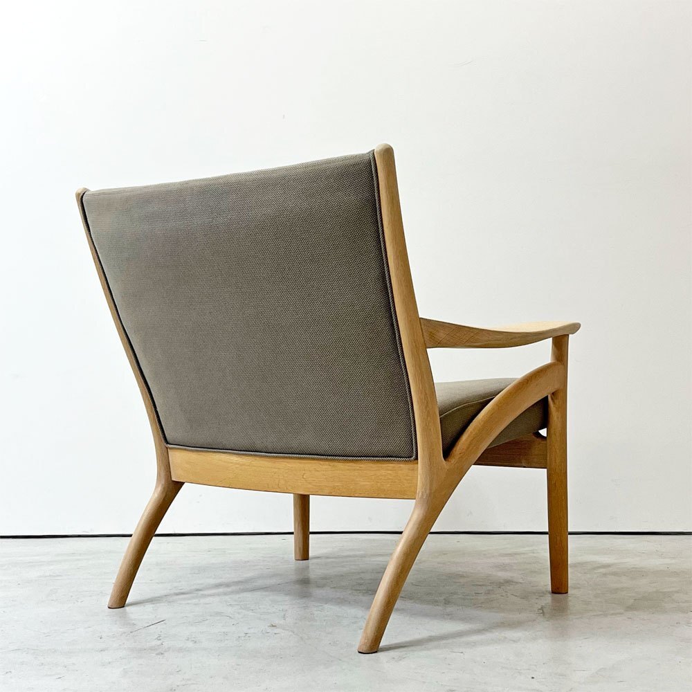 | コメント | 北海道・旭川の家具メーカー「インテリアセンター」は、現在" カンディハウス / CANDE HOUSE "という社名で1968年に設立。北海道の上質な国産ナラ材を使用した家具製造を続け、「 和の美意識 」が内包する同社のオリジナル家具やオーダー家具は国内外で高い評価を受けています。 今回は同社が販売していた柔らかく優しい曲線が特徴の"フローレンス FLORENCE"シリーズ1Pラウンジチェアとなります。 デザインを手掛けたのは、北海道恵庭市生まれの家具デザイナーである“中村昇”。 フレームにはナラ無垢材を使用し、虎斑が表れた上質な杢目を楽しむ事が出来ます。グレー系カラーファブリックとナラ無垢材のナチュラルな色合いが合わさり落ち着いた雰囲気に。 座面は幅広な為ゆったりと座る事ができ、窮屈さを感じさせない仕上がりに。 背もたれは傾斜が付いており、背中を預け全身の力を抜いて身を任すことが出来ます。 アーム部は幅広で腕をゆったりと休められるので、お昼寝や映画鑑賞、読書などリラックスシーンでは必見のフォルム。 綺麗なカーブを描いており、その滑らかな曲線はついつい撫でてしまいます。 また、ふっくらとした厚手のクッションは程よく沈み込み長座での負担を軽減してくれます。 シンプルながら計算された座り心地によってリラックス時間をより向上させ、ナチュラルながら大人の落ち着いた雰囲気を持つ一脚です。 ※当ショップは、主にリサイクル品を取り扱っております。基本的にUSED品である事をご理解頂き、ご入札をご検討下さいませ。 |