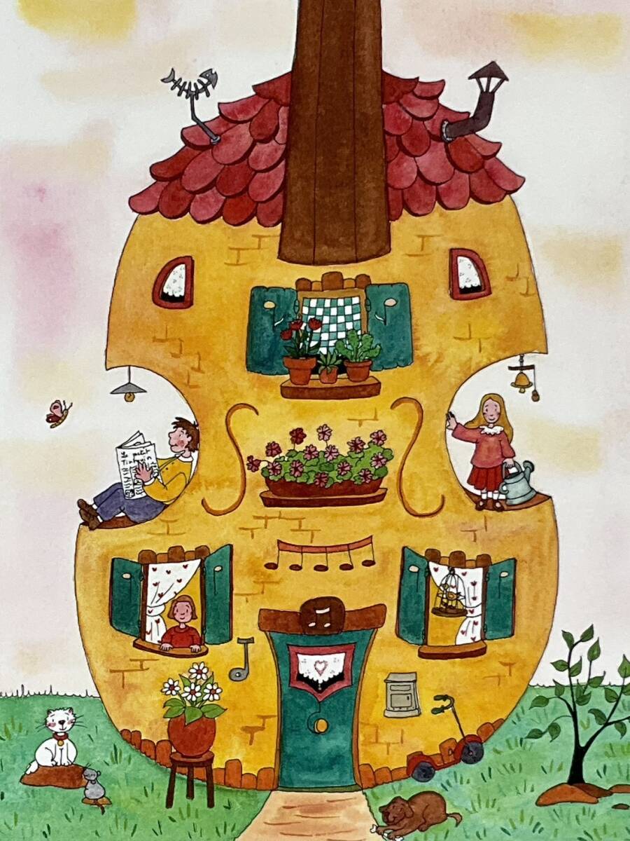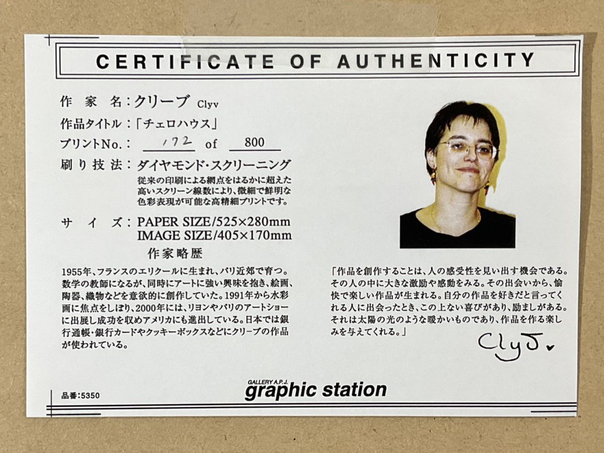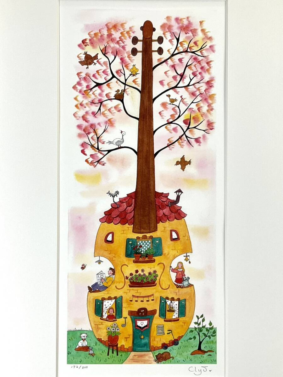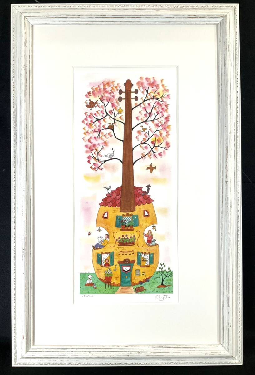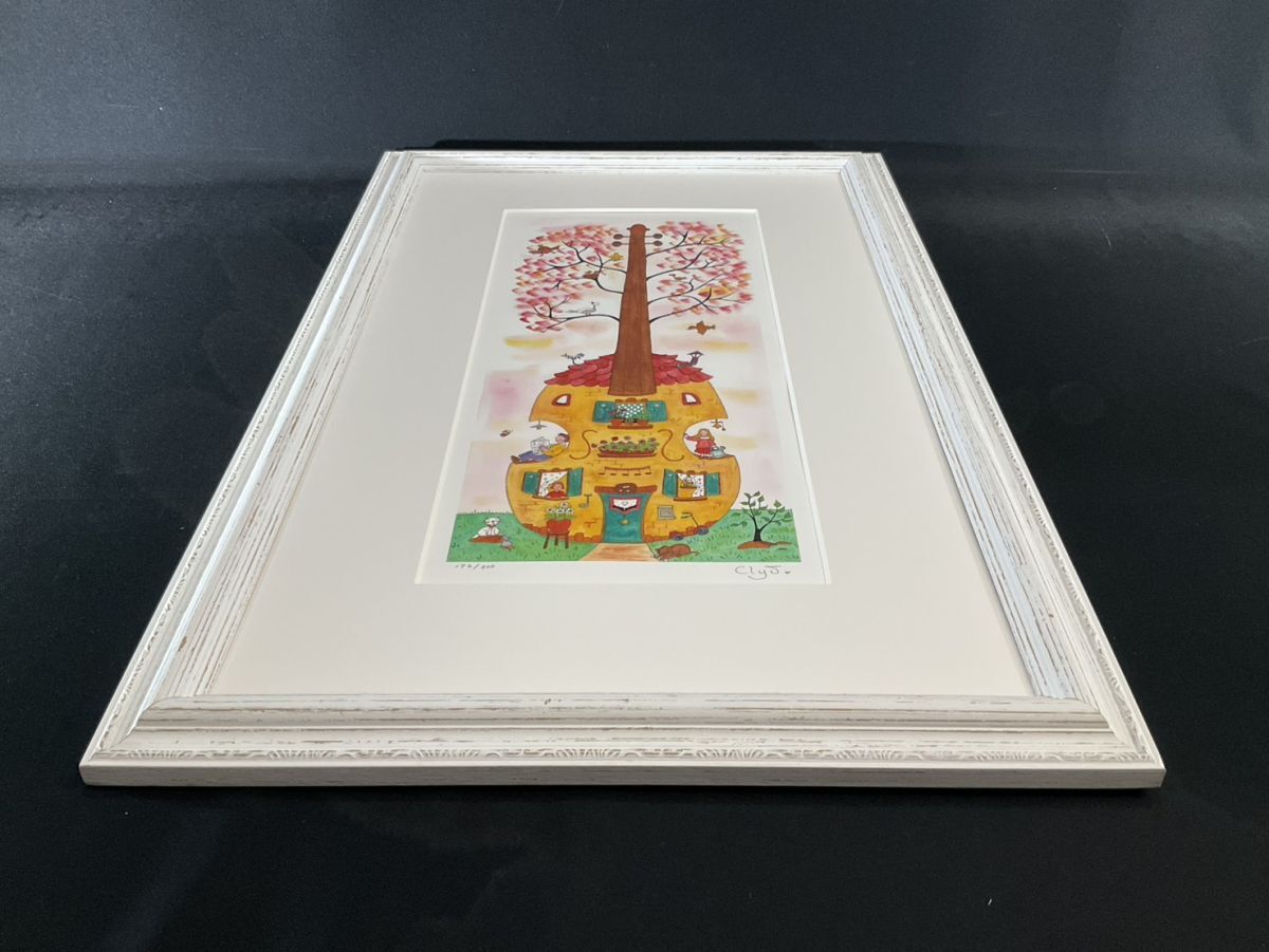 真作ダイヤモンドスクリーニング■Clyv・クリーブ■『チェロハウス』■可愛い逸品■額付絵画