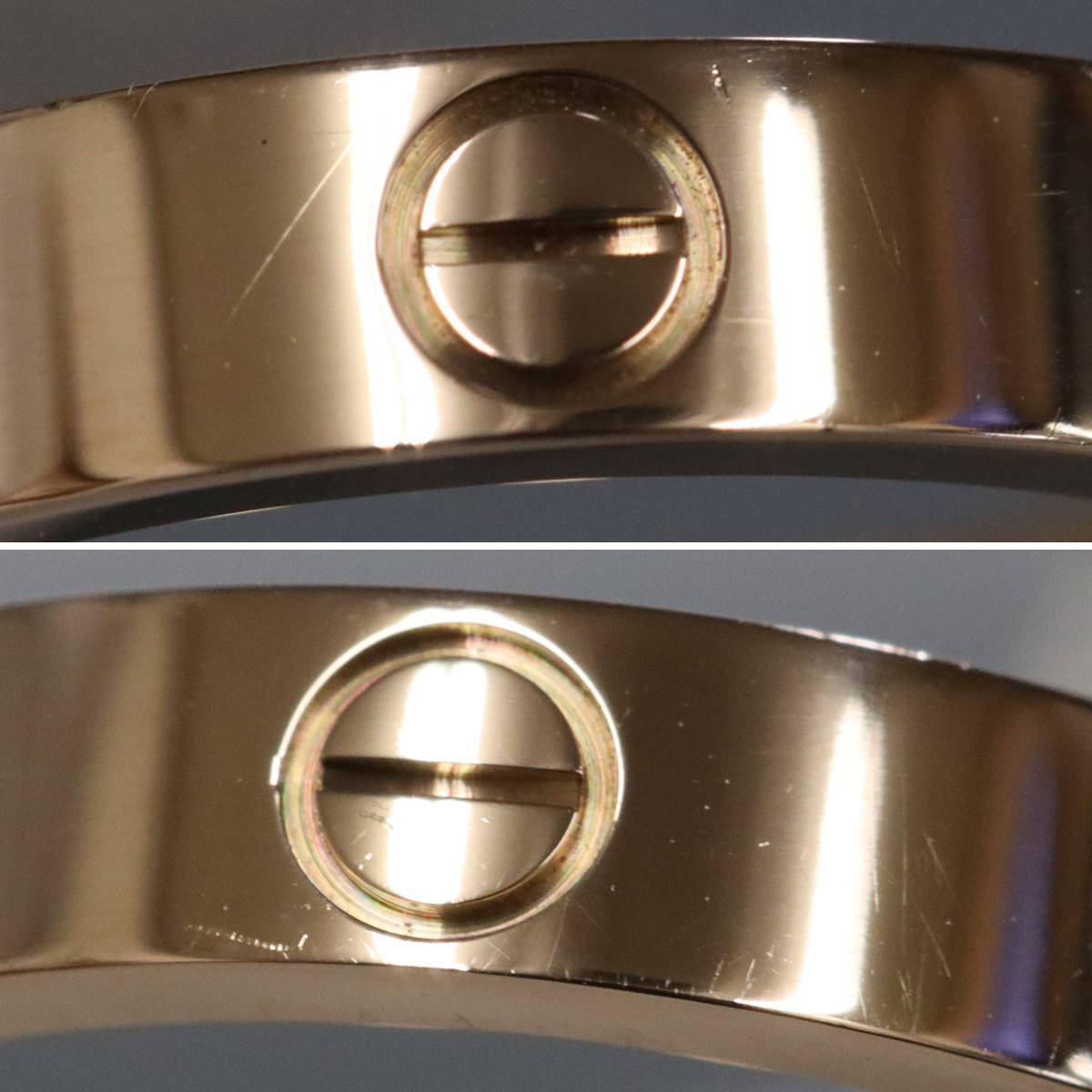 | カルティエの750PGミニラブリング 3.8g #10(#50)(B4049750)の中古品です。 保証書が付属し、記載の購入日は2003年12月24日です。 わずかに小傷がありますが、肉眼では目立ちません。