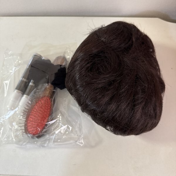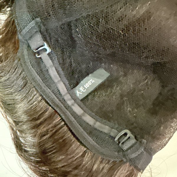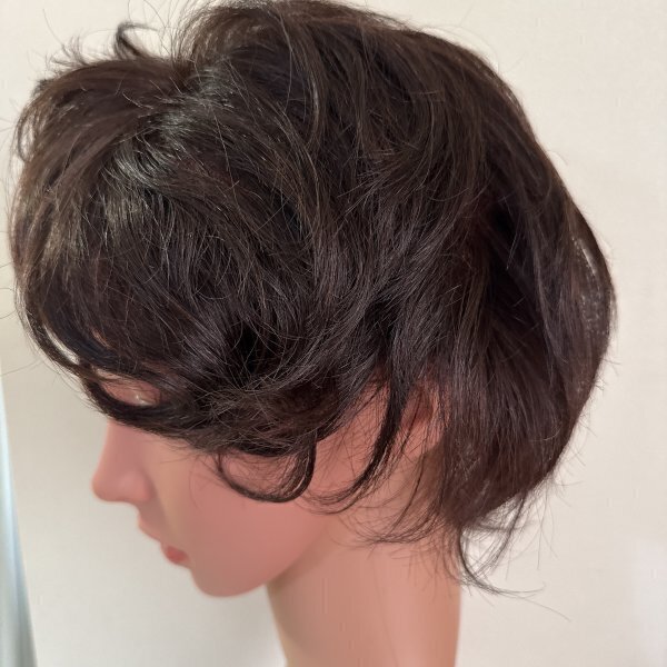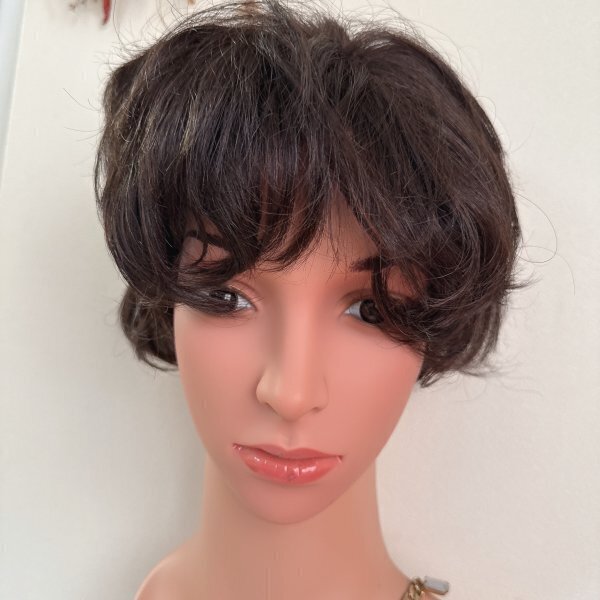 WG122-1 ② 人毛100 簡単 ハンドメイドウイッグ 自然色 セミカール フルウイッグ おしゃれかつら  白髪隠しにも