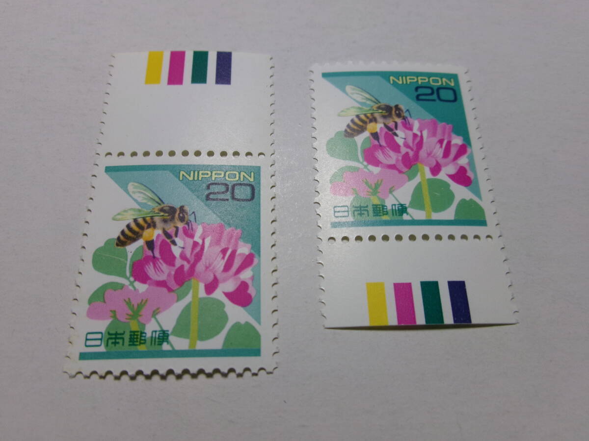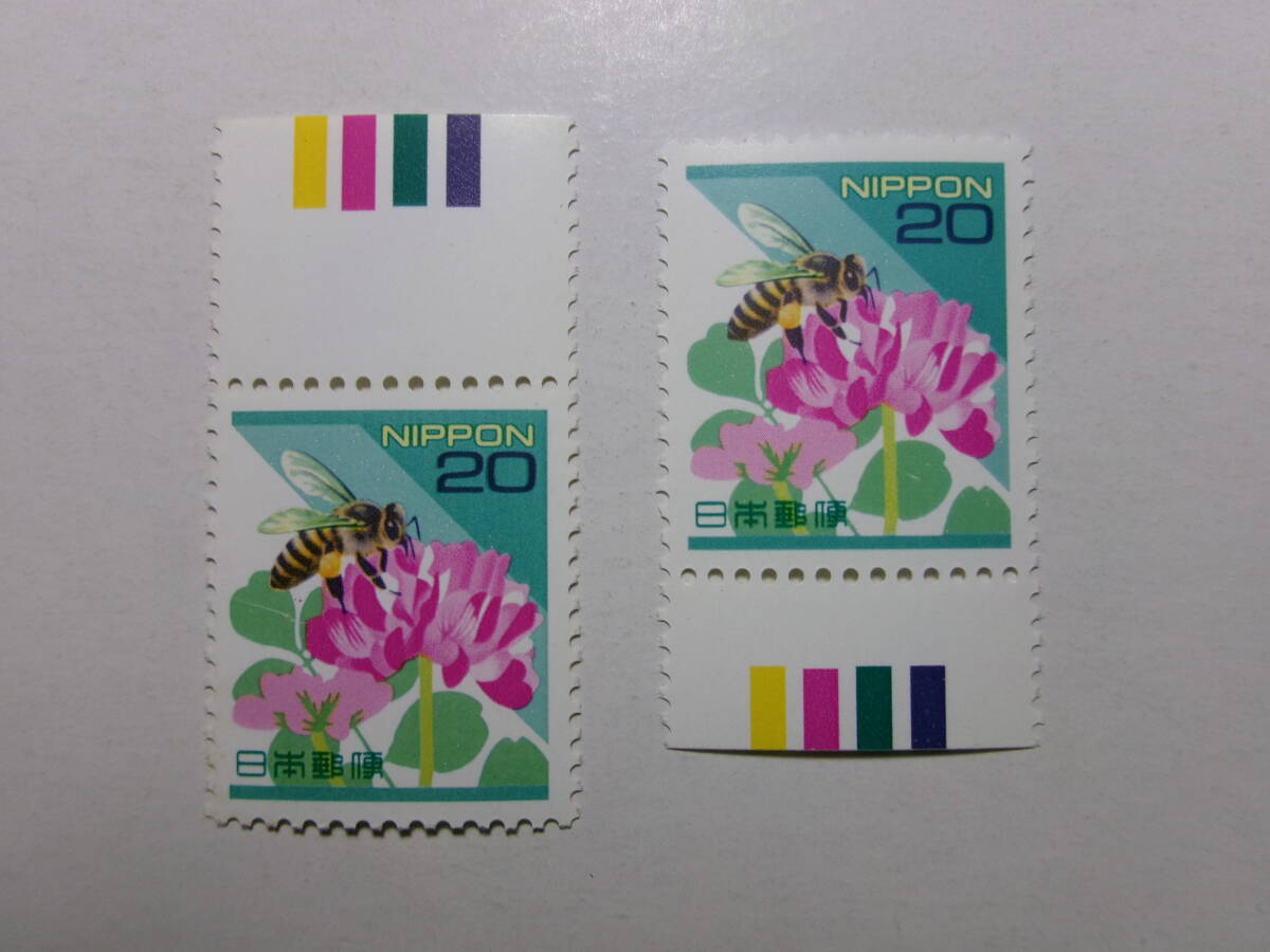 平成切手 20円 ニホンミツバチ カラーマーク上下 2枚 未使用 黒-L