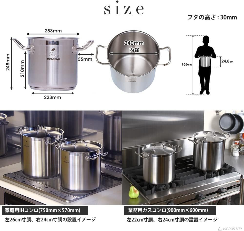 | 【アウトレット品】 業務用 ステンレス 寸胴鍋 24cm 蓋つき IH対応 ガス対応 両手鍋 寸胴 両手鍋 キプロスター IH24 KIPROSTAR |