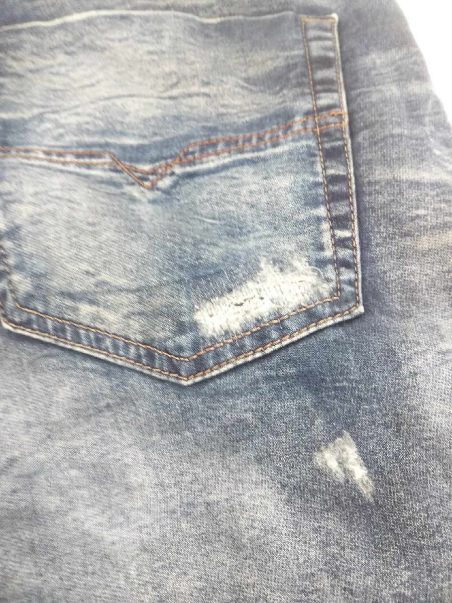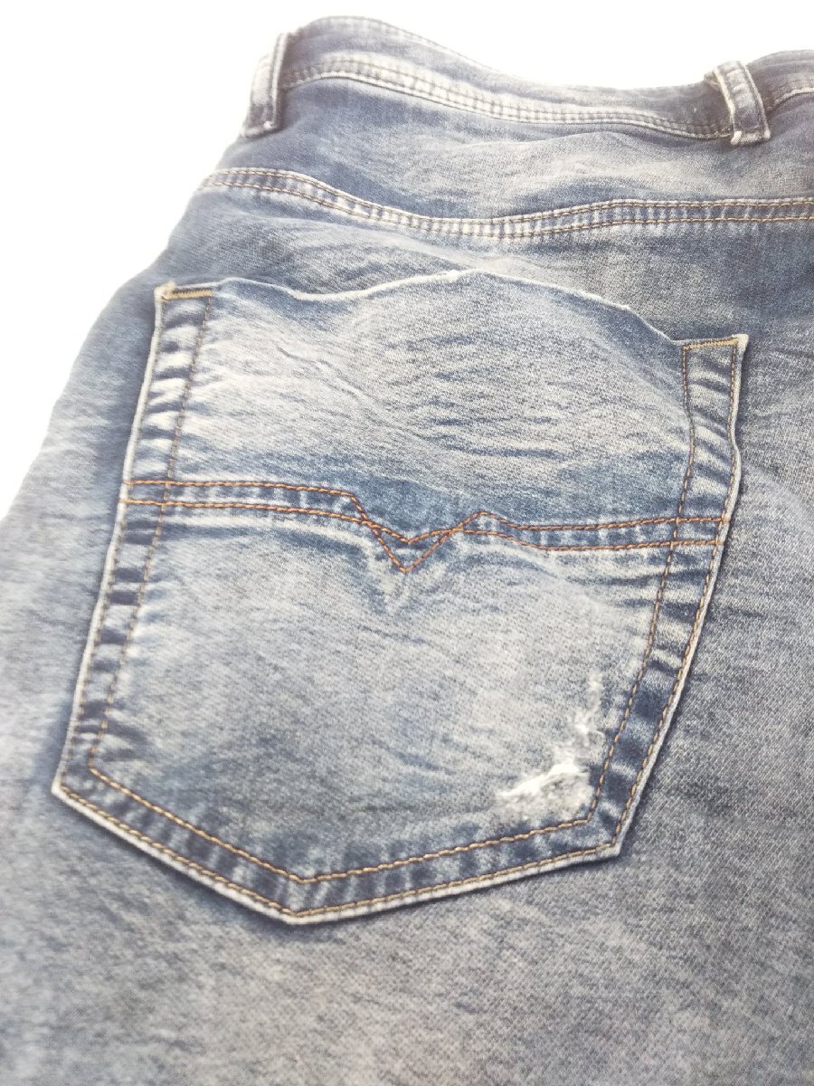 | ・中古商品になります。 ・シワ汚れ、シミ多数、色あせ、着用感有。 ・ダメージ加工有。 ・デニム地ではなく綿90%のデニム風。 ・サイズ表記:32 ・【実寸】ウエスト平置き:約44cm/股上:約28cm/股下:約77cm/ワタリ:約31cm/裾幅:約16cm※素人採寸の為、多少の誤差有。 | |||||||||