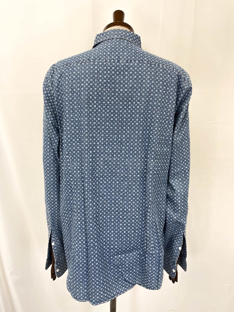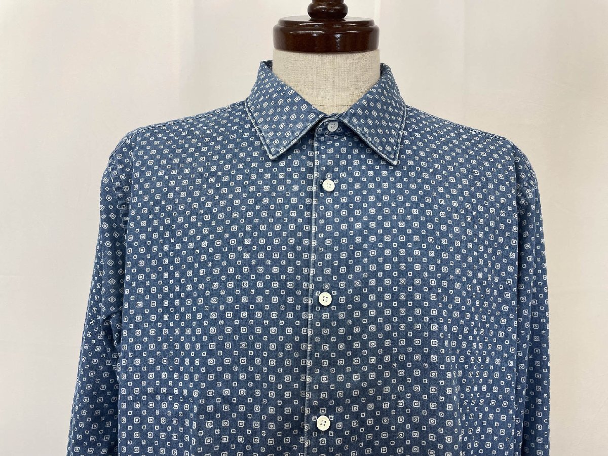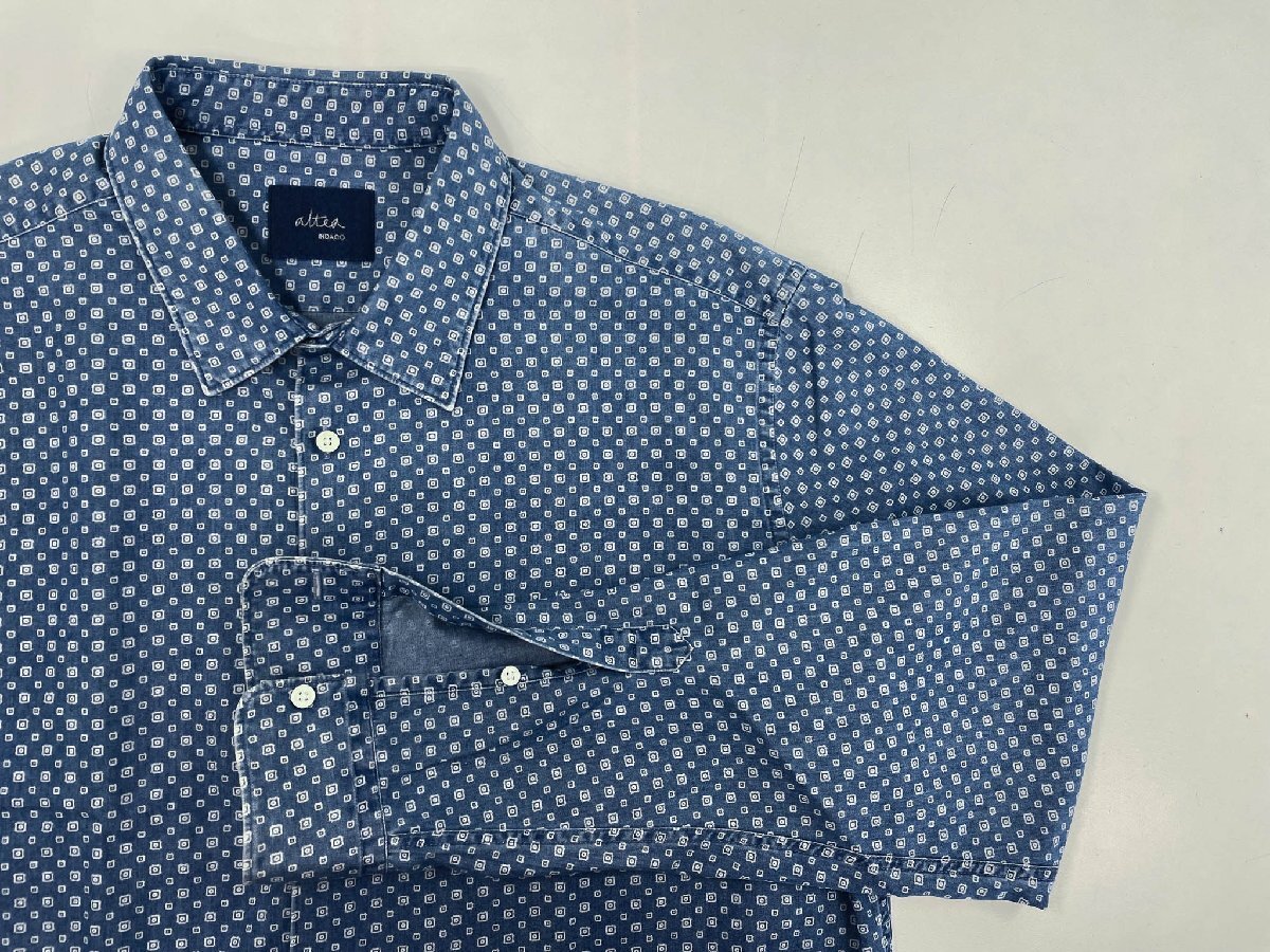 美品【Altea アルテア】 コットン100% 長袖シャツ (メンズ) size43 薄めのインディゴブルー系 総柄 ◇33MK6365◇