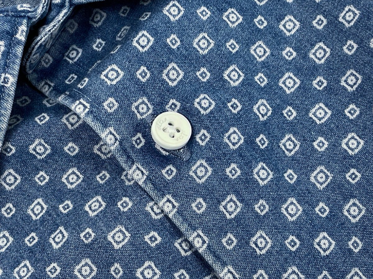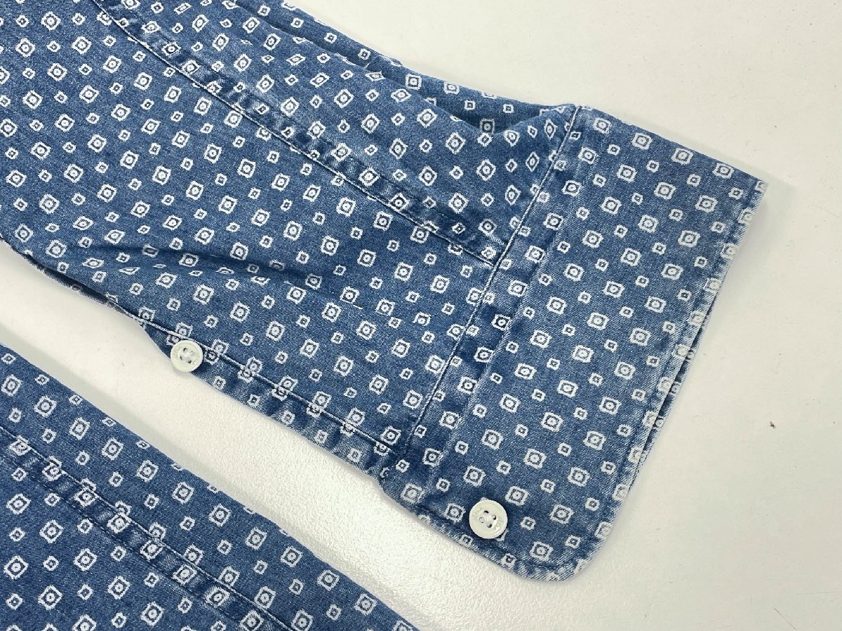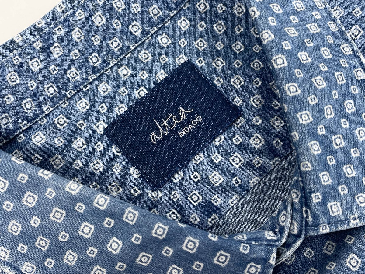 美品【Altea アルテア】 コットン100% 長袖シャツ (メンズ) size43 薄めのインディゴブルー系 総柄 ◇33MK6365◇