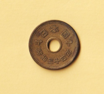 ☆5円黄銅貨《昭和34年》 穴ズレエラー  普通品+