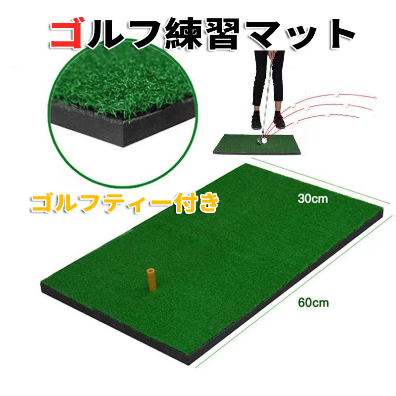 ゴルフ練習マット 30cm×60cm 室内 素振り 人工芝 ラフ ティー付き