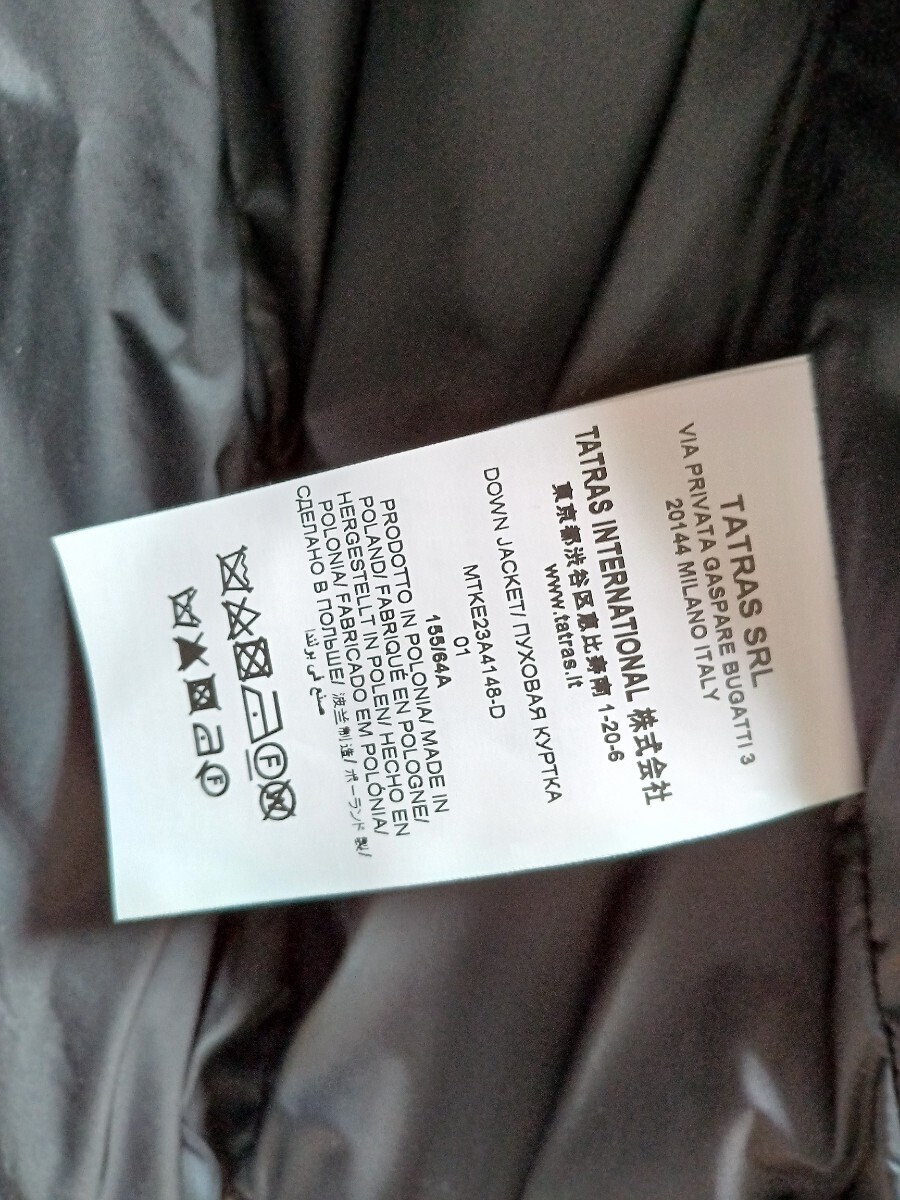 付属品はTATRAS専用ハンガー、カバー、タグカード等、です。