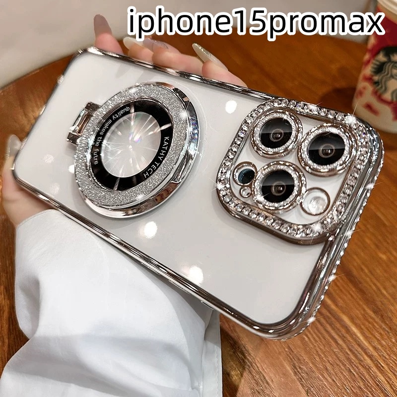 iphone15promxケース カーバー スタンド付き 透明 お洒落 韓国 軽量 ケース 耐衝撃 高品質 シルバー
