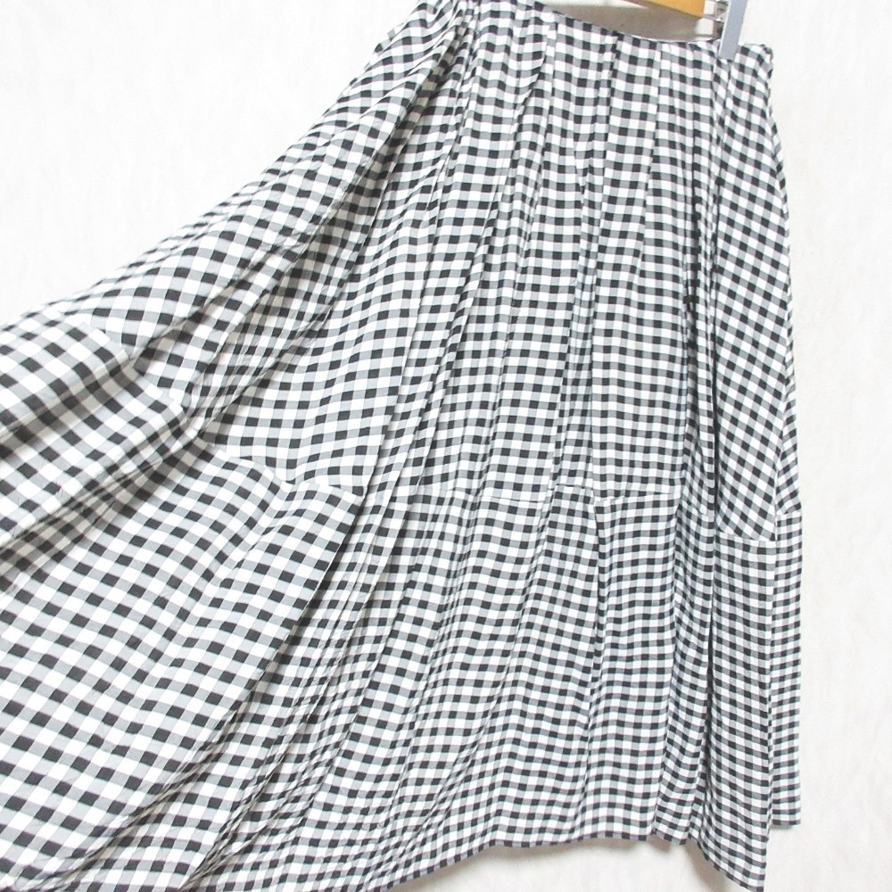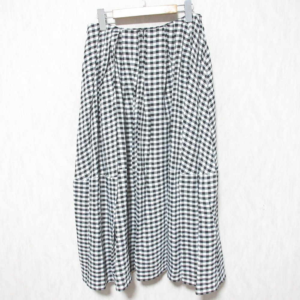 美品 KHAITE ケイト ギンガムチェック レーヨン ロングスカート 0 ブラック ホワイト