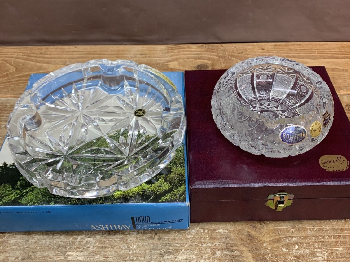 【O-8322】未使用 灰皿 ボヘミアグラス BOHEMIA HOYA クリスタル ダリア アッシュトレイ セット まとめ 東京引取可【千円市場】