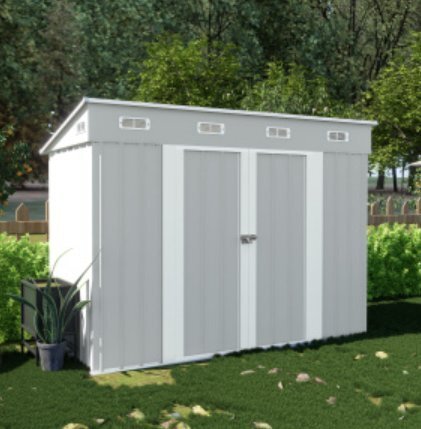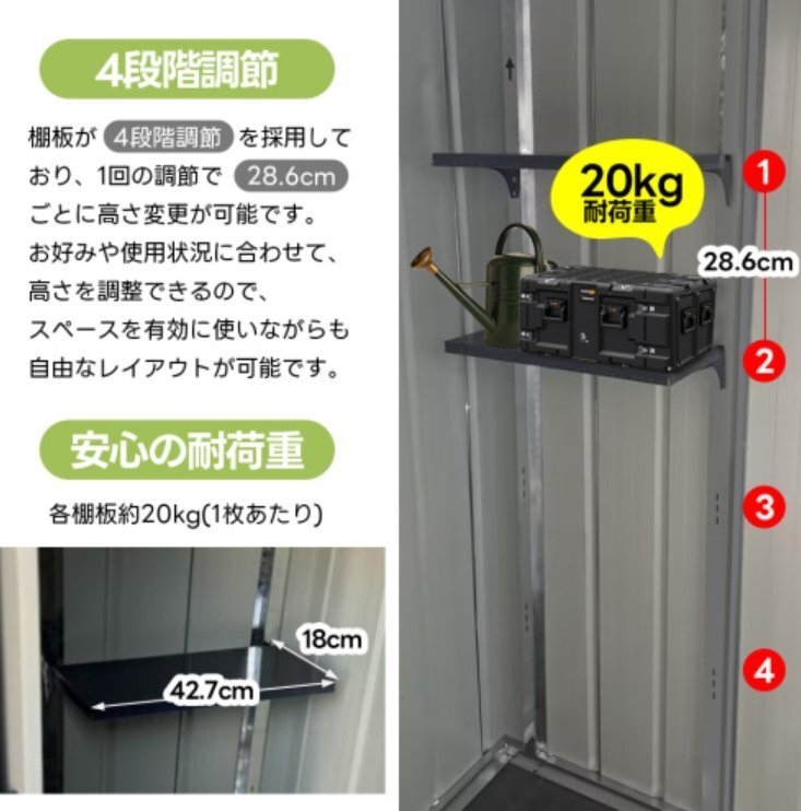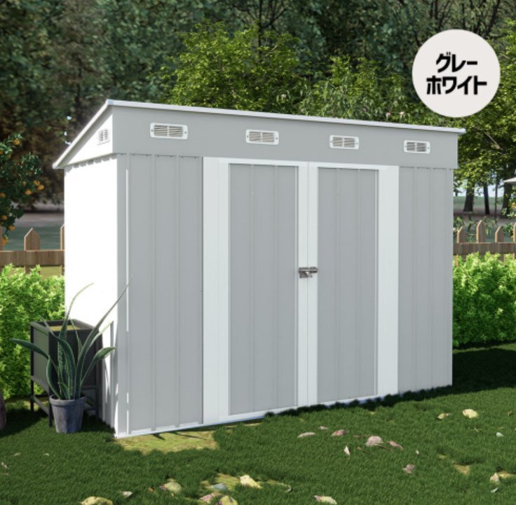【国内発送】物置 屋外 スチール 倉庫 床材補強フレーム付き 戸外収納庫 幅270*奥行き126*高189 物置き おしゃれ 大型 収納庫 屋外物置