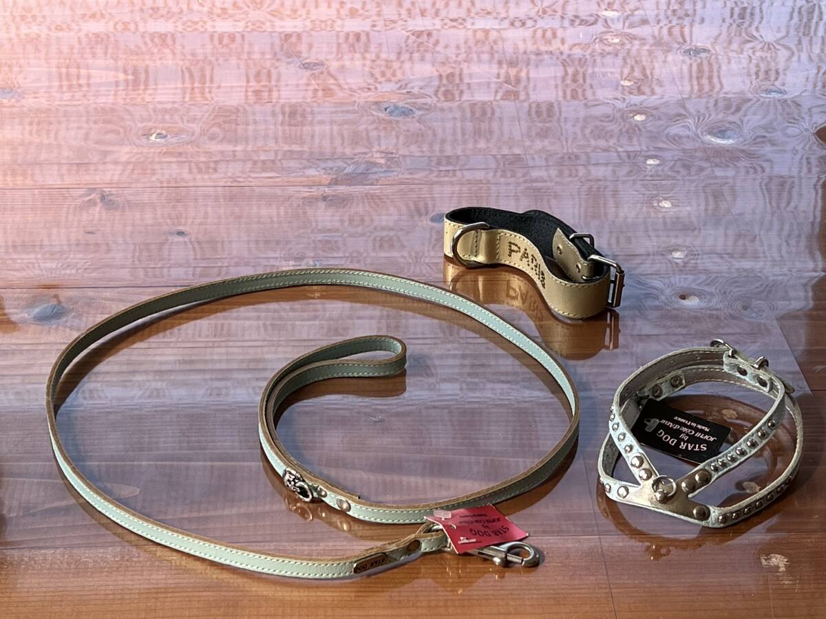 フランスパリで購入した小型犬用リード他3点セット。アイスブルー色の上品で、おしゃれな品てす。未使用ですが、数年保管していたお品です。ご理解の上、ノークレームノーリターンでお願い致します。