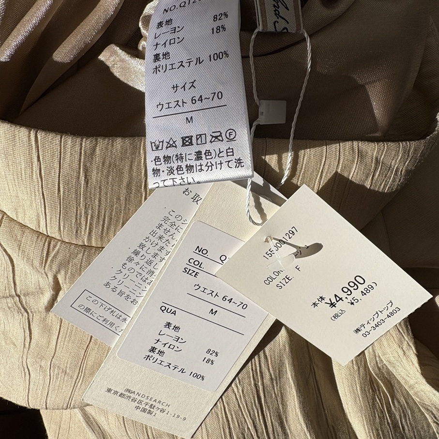 | 新品未使用■ロングスカート■シワ加工■ベージュ・無地■レディース・婦人■ウエストゴム■Mサイズ(9号) | |||