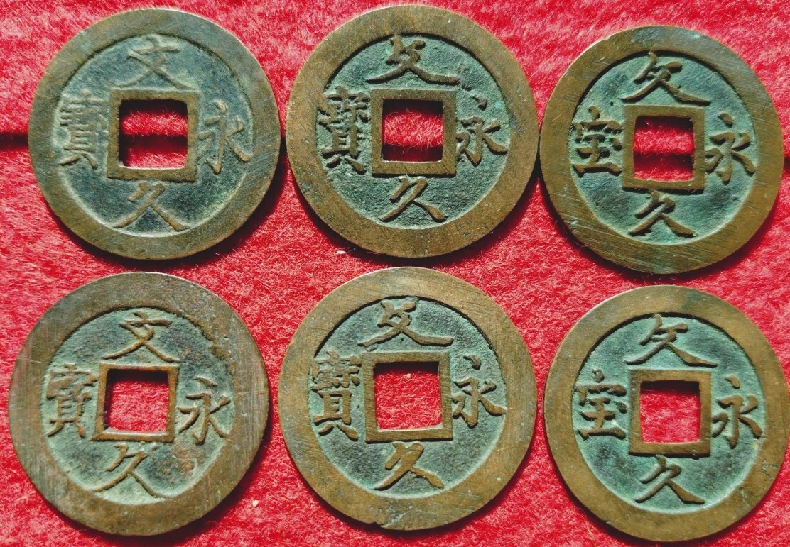 4510. ≪文久永宝≫ E 真文.草文.略宝 各3枚合計6枚 上品 (文久永寳.波銭.四文銭. 古銭 .寛永通宝)