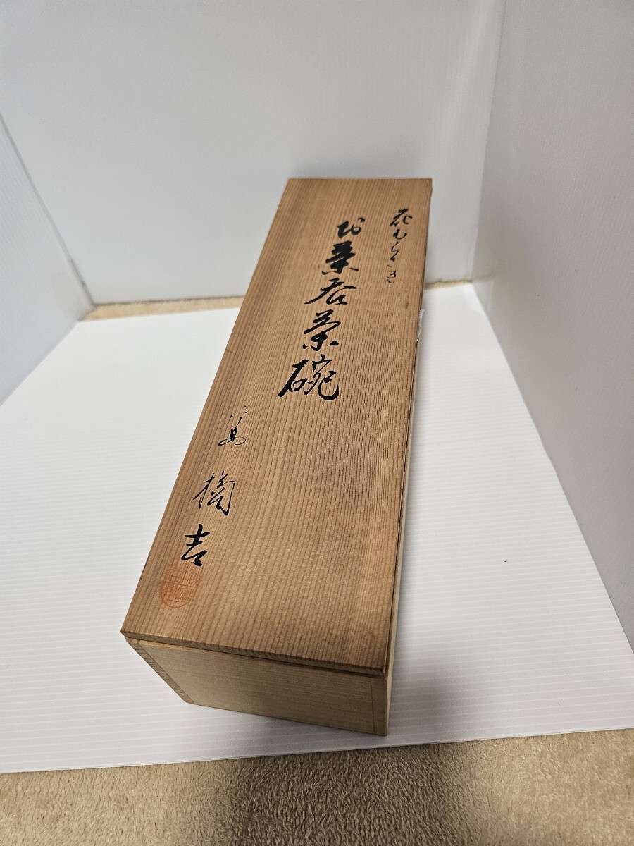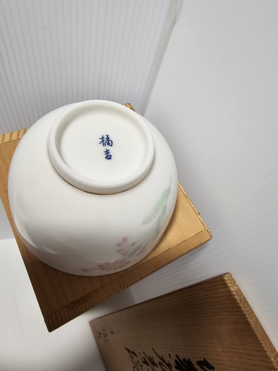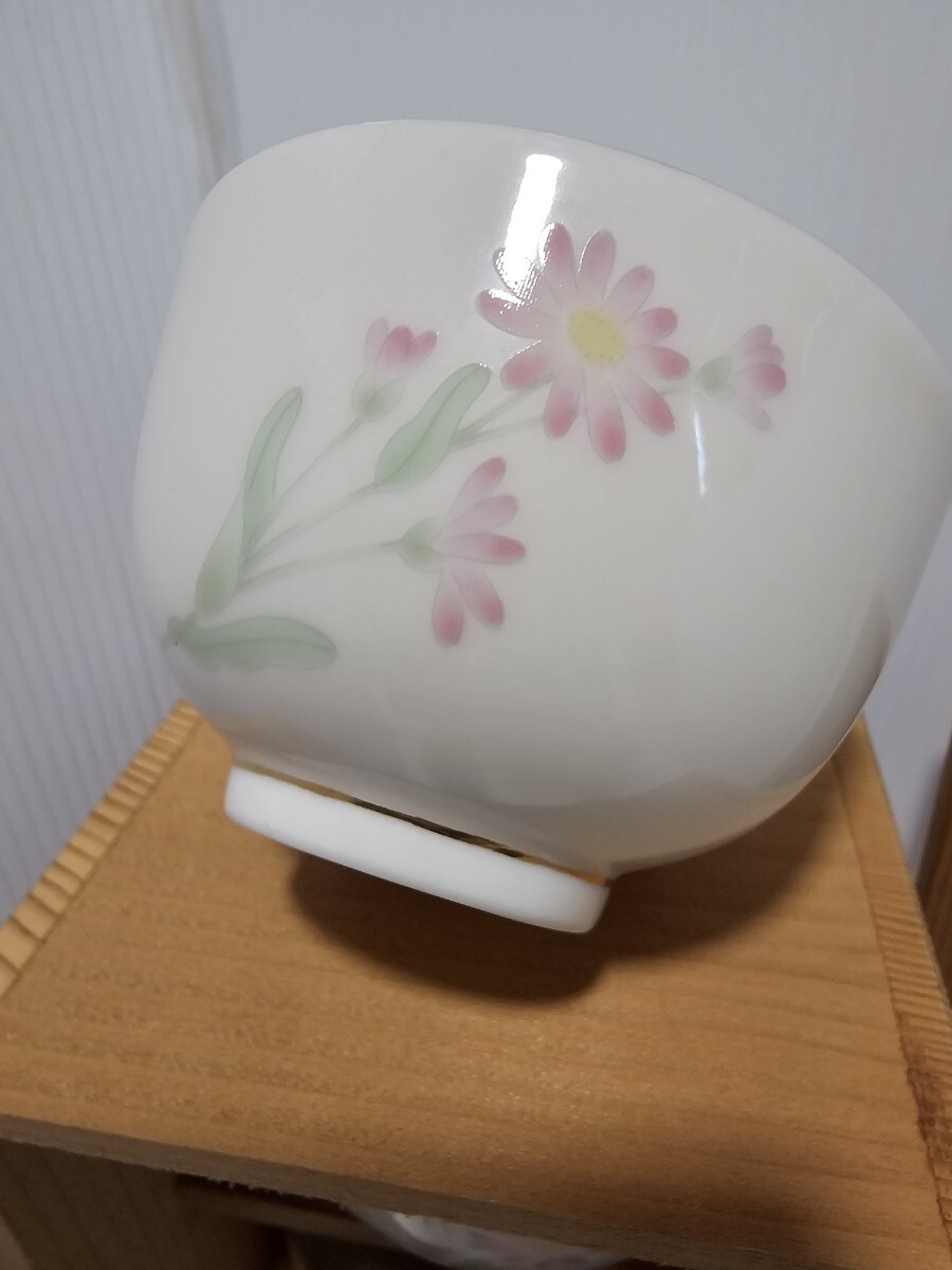 花柄デザインの陶器湯飲み5個セット、木箱付き。