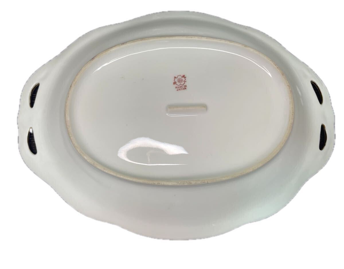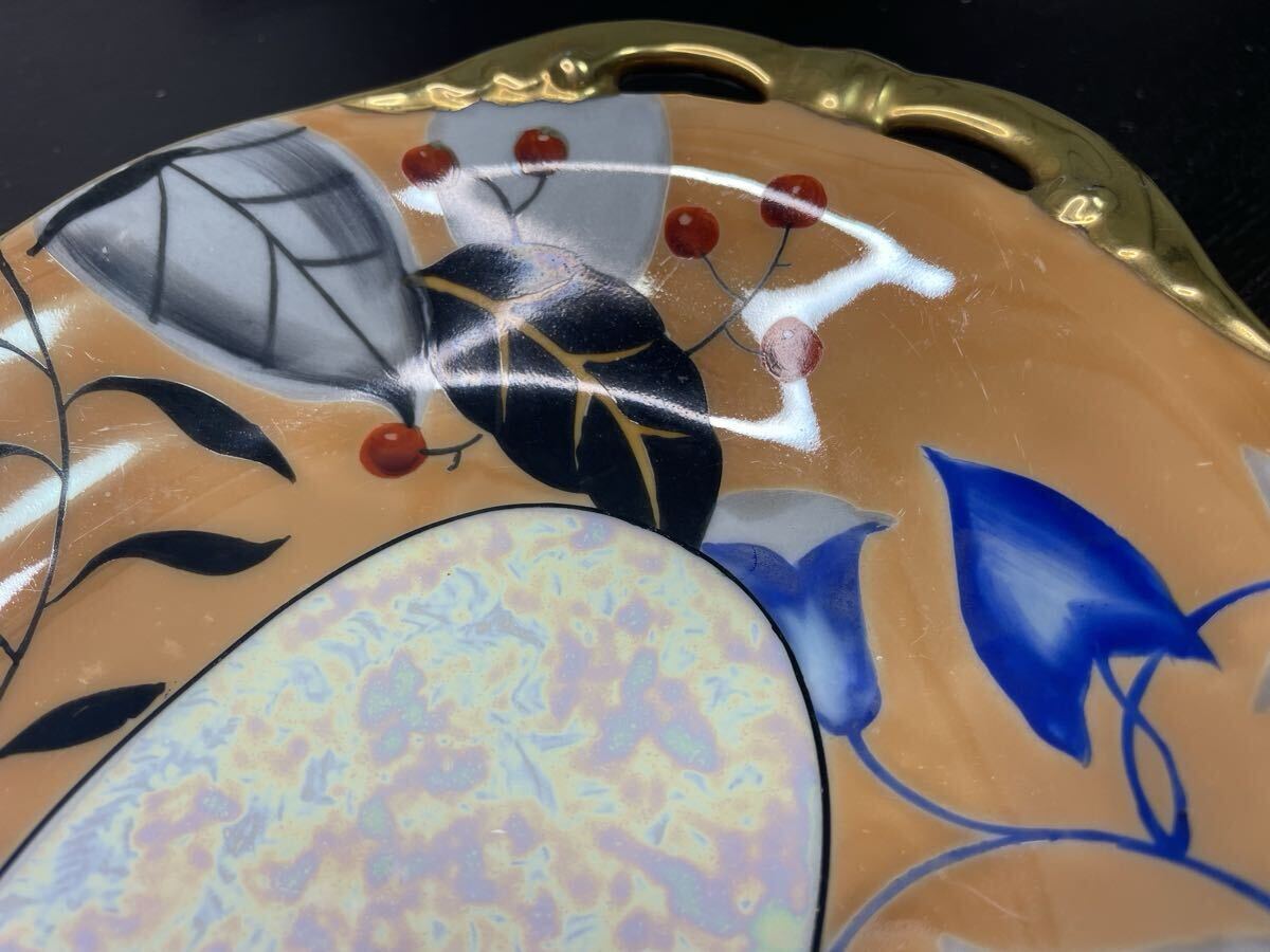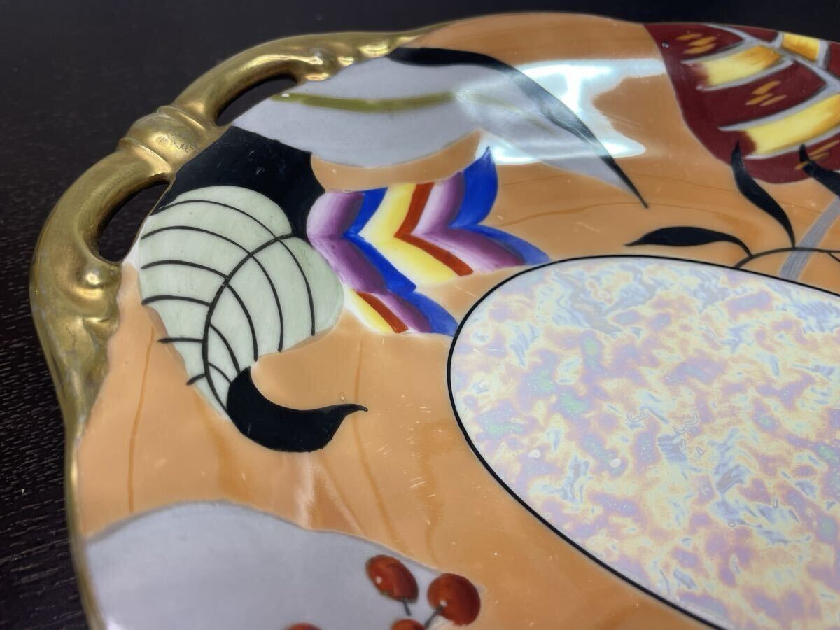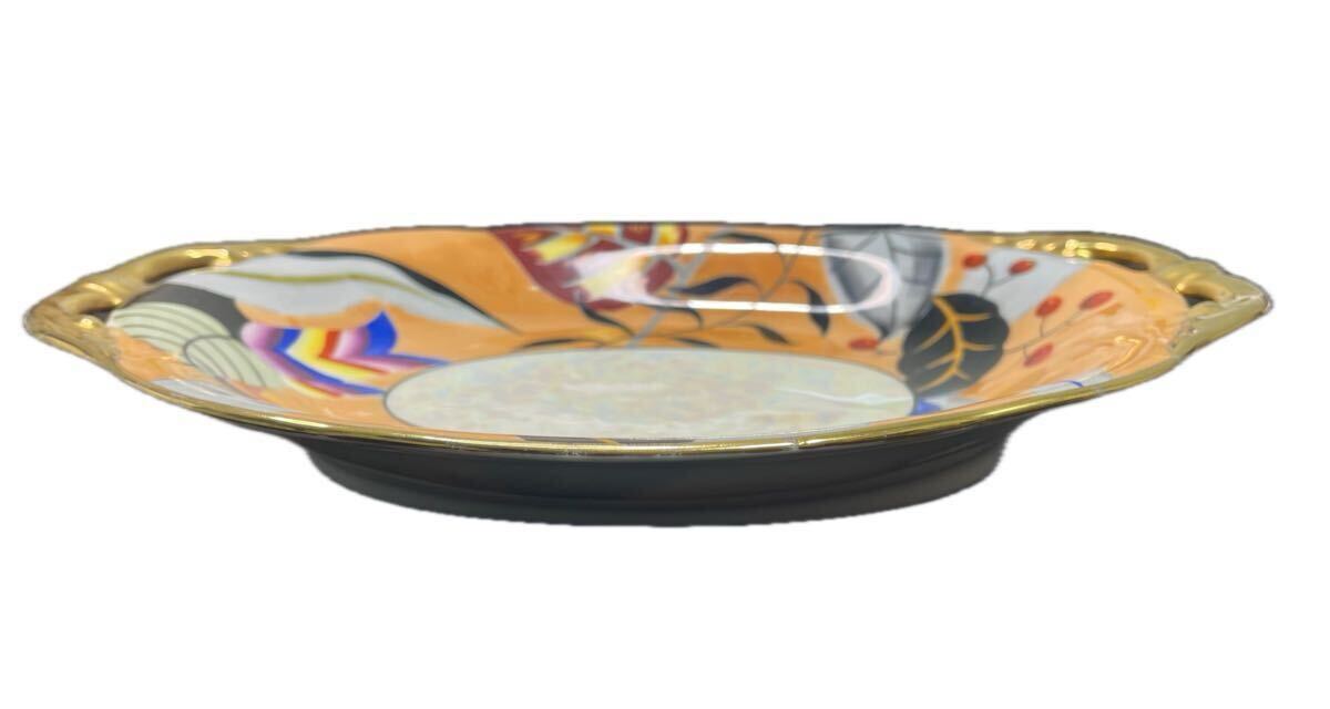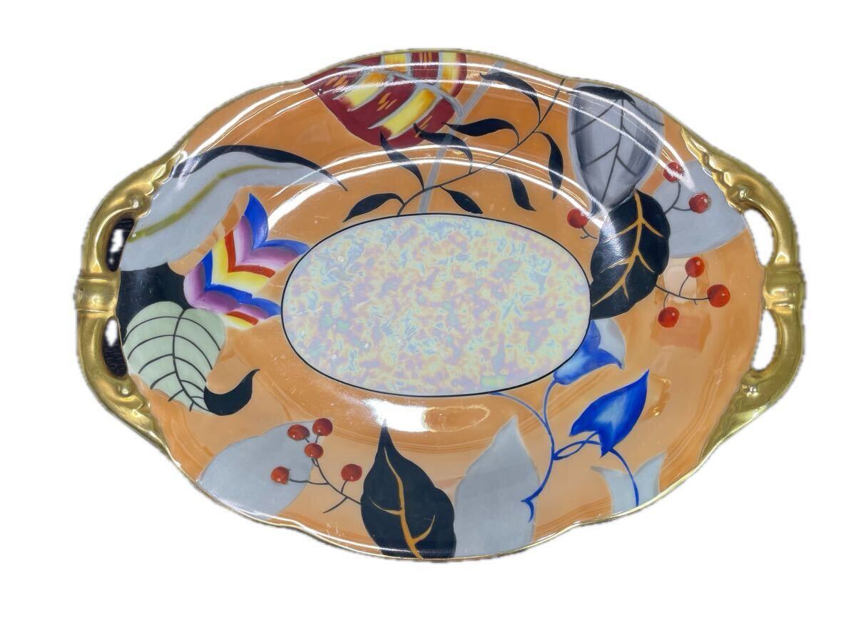 Rare Noritake Lusterware Side Tray / Oval Dish with Handles - Art Deco Style Floral Pattern - Gold Trim (Sakura Mark, MADE IN JAPAN)