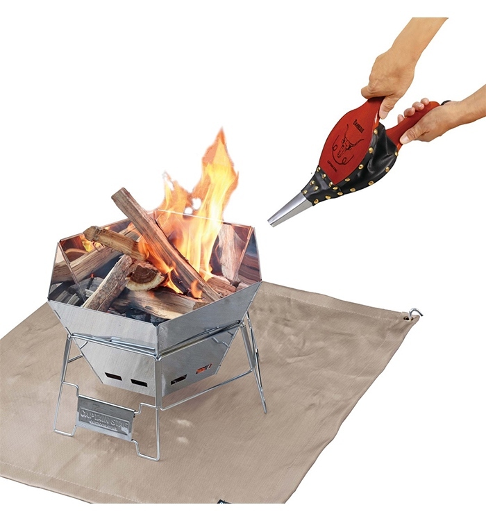 | 伝統的なふいごタイプの送風機。 ひと味違ったキャンプサイトを演出する焚き火ツール。 |
