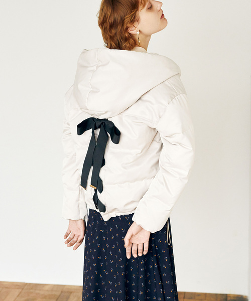 キーワード:ダウンコート ダウンジャケット レディース リボン 秋 冬