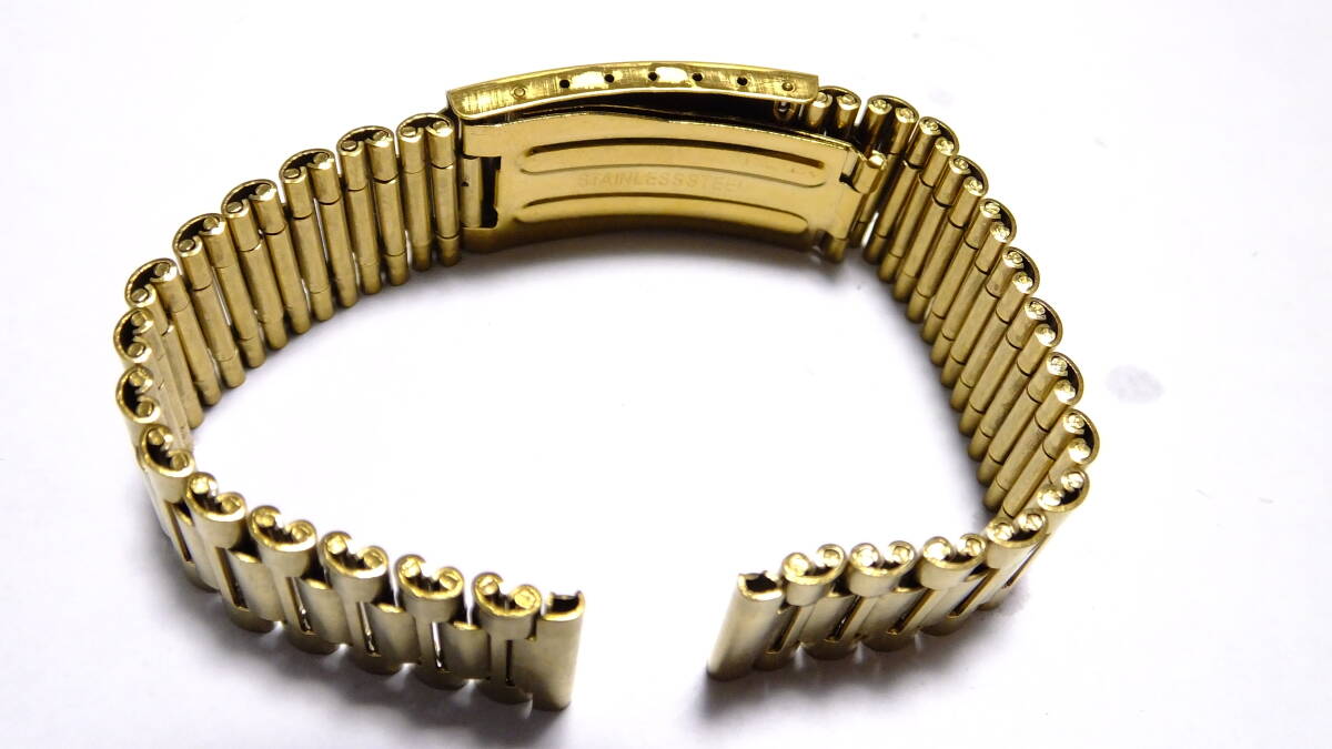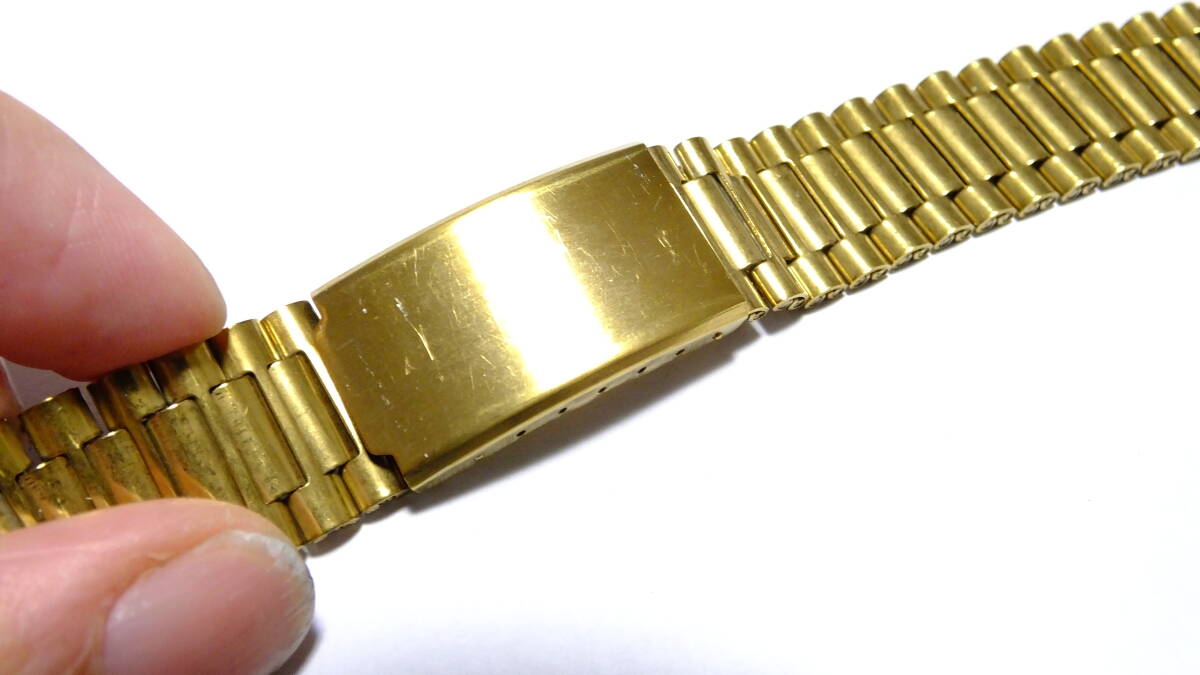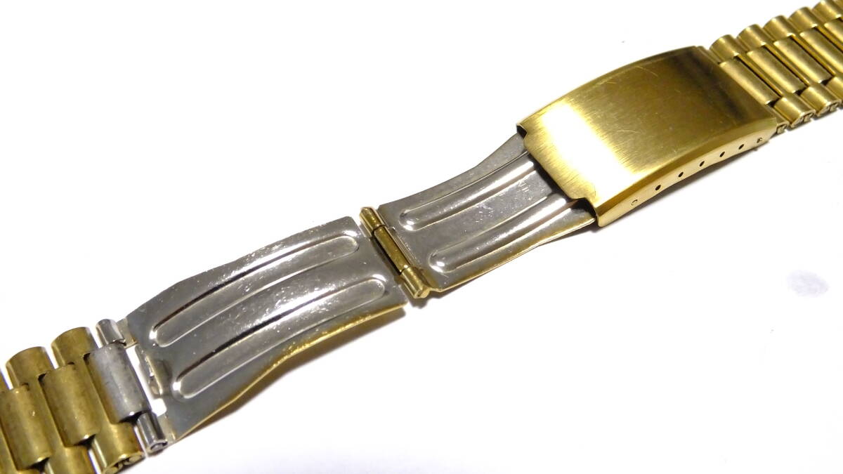 デッドストック 3連巻き込み レトロ三つ折りバックル 黄銅色系 18mm(ラドー交換用、ダイアスター交換用に)40RDG186
