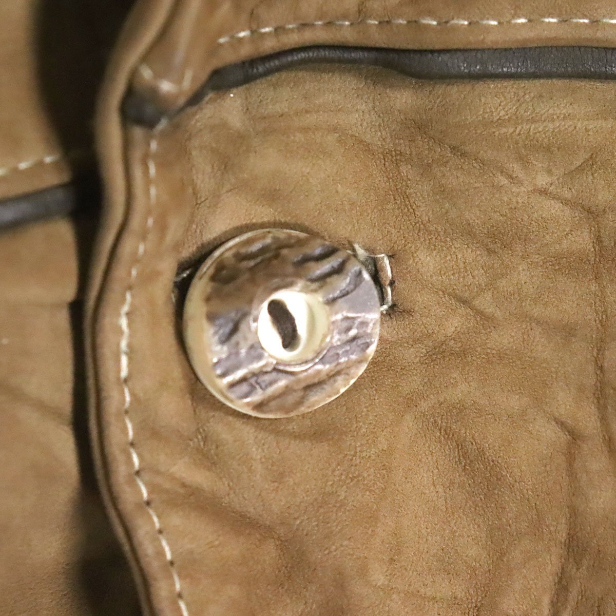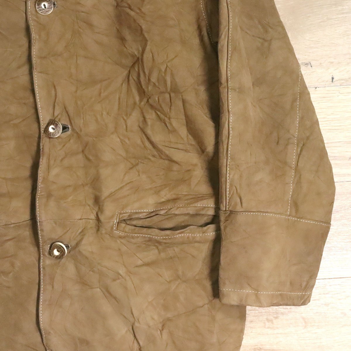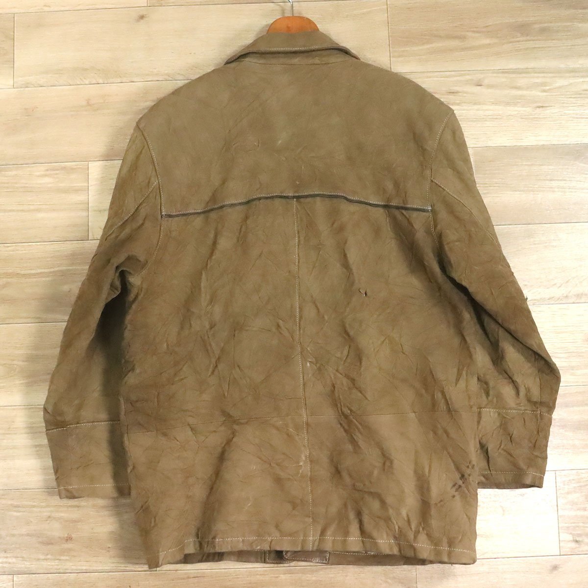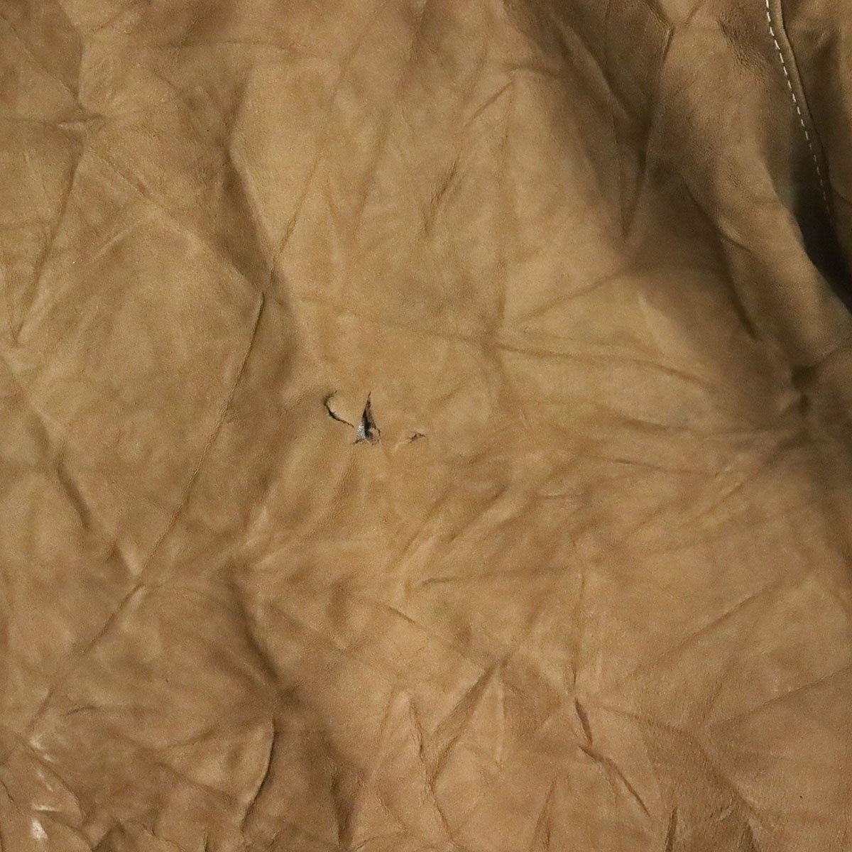 中古品です。使用感があります。襟や袖先などボディの所々に経年による擦れや変色、背面中央右辺りに破れがあります。
